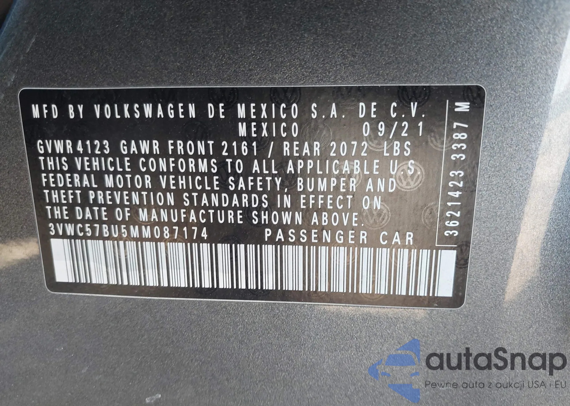 • VIN: 3VWC57BU5MM087174