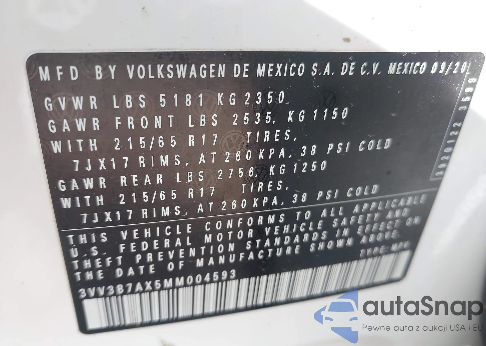VIN: 3VV3B7AX5MM004593