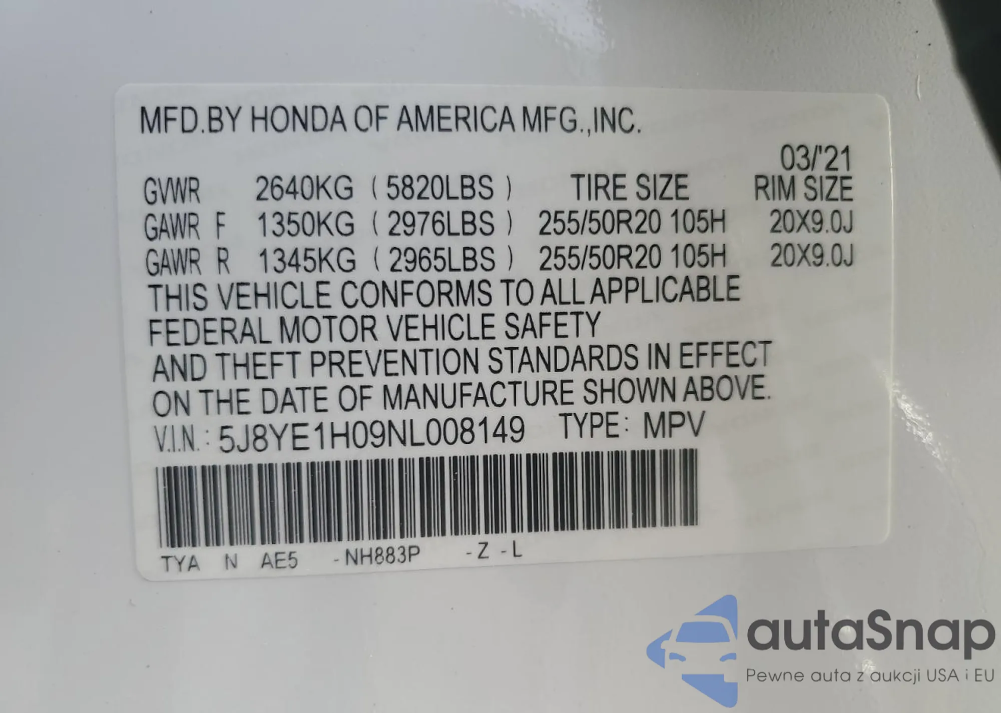 Автомобиль Acura MDX 2022 (VIN 5J8YE1H09NL008149) имеет документы, препятствующие регистрации. Могут возникнуть сложности при экспорте и регистрации. Обратитесь к экспертам AutaSnap для поиска альтернатив.
