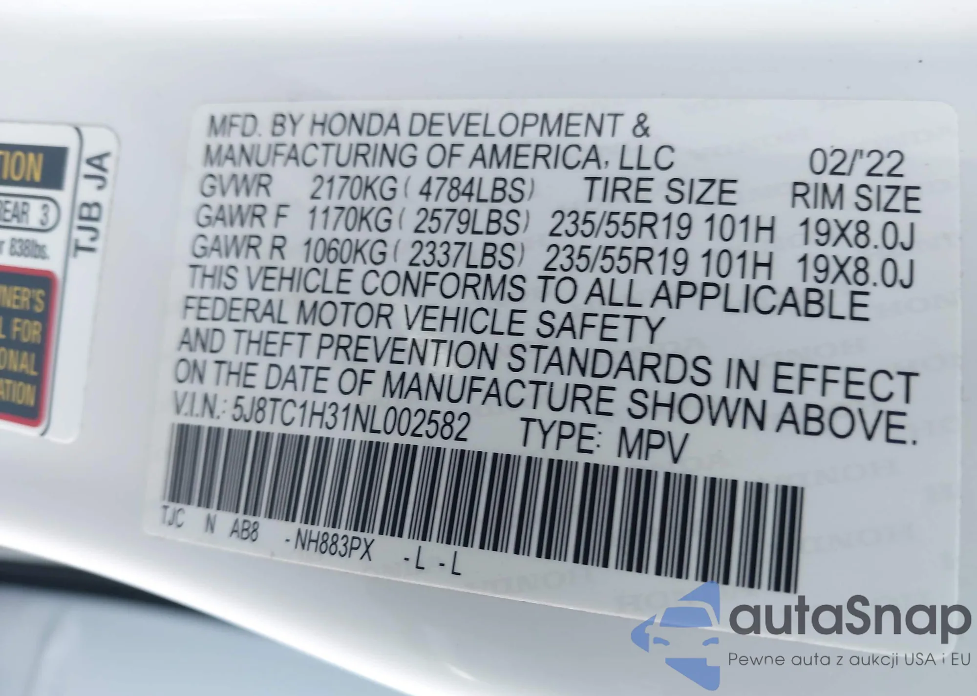 VIN: 5J8TC1H31NL002582