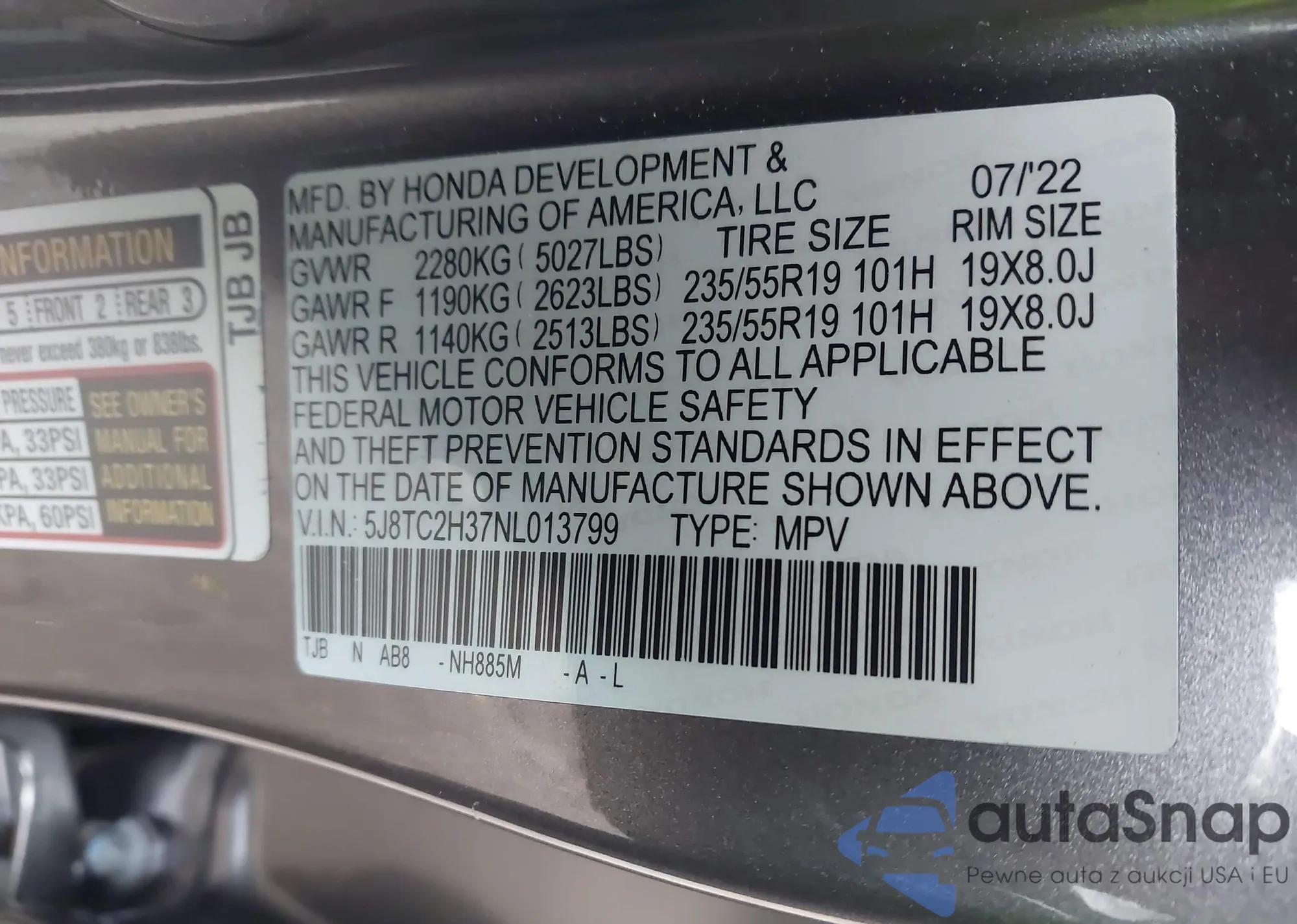 VIN: 5J8TC2H37NL013799