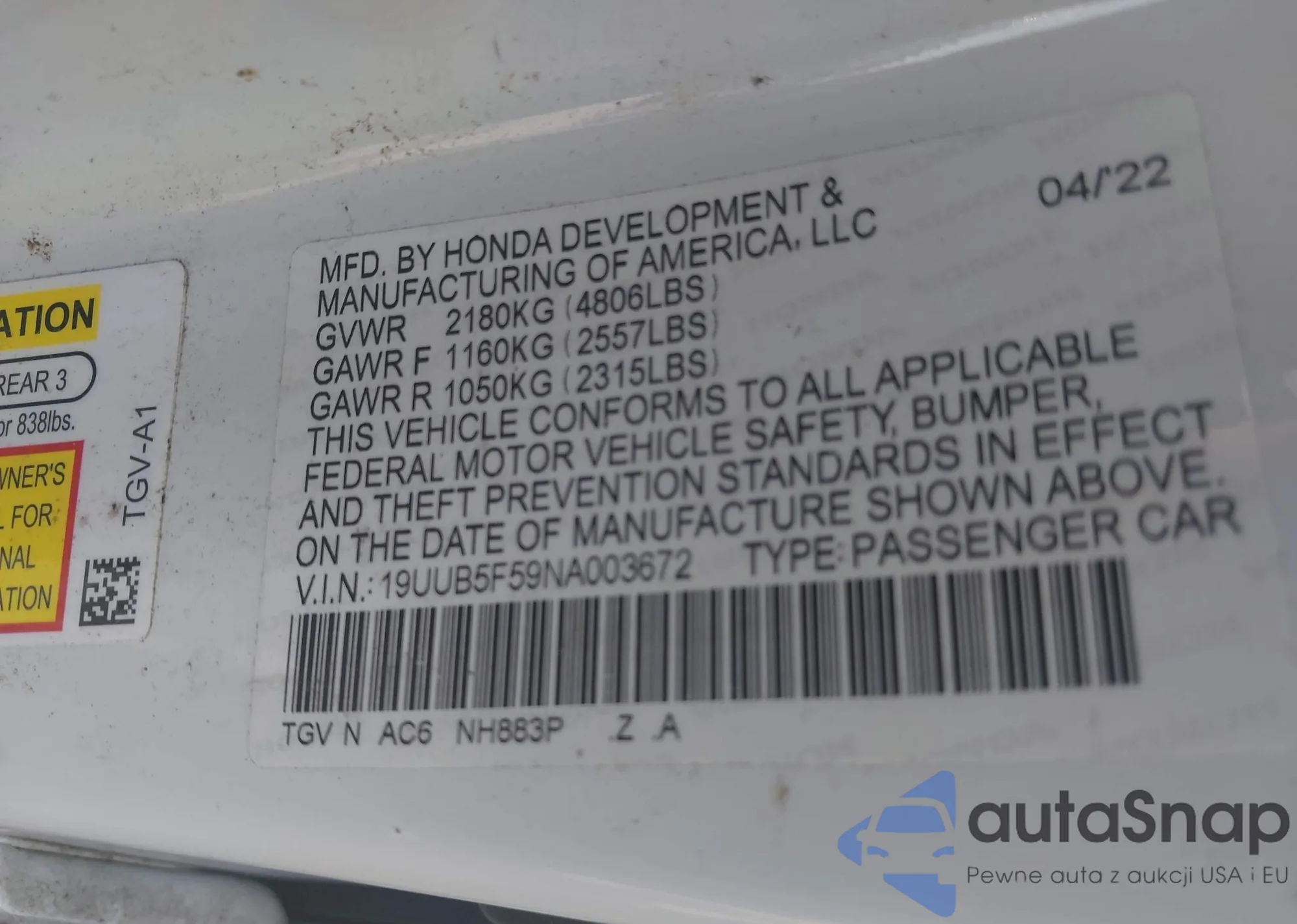 VIN: 19UUB5F59NA003672