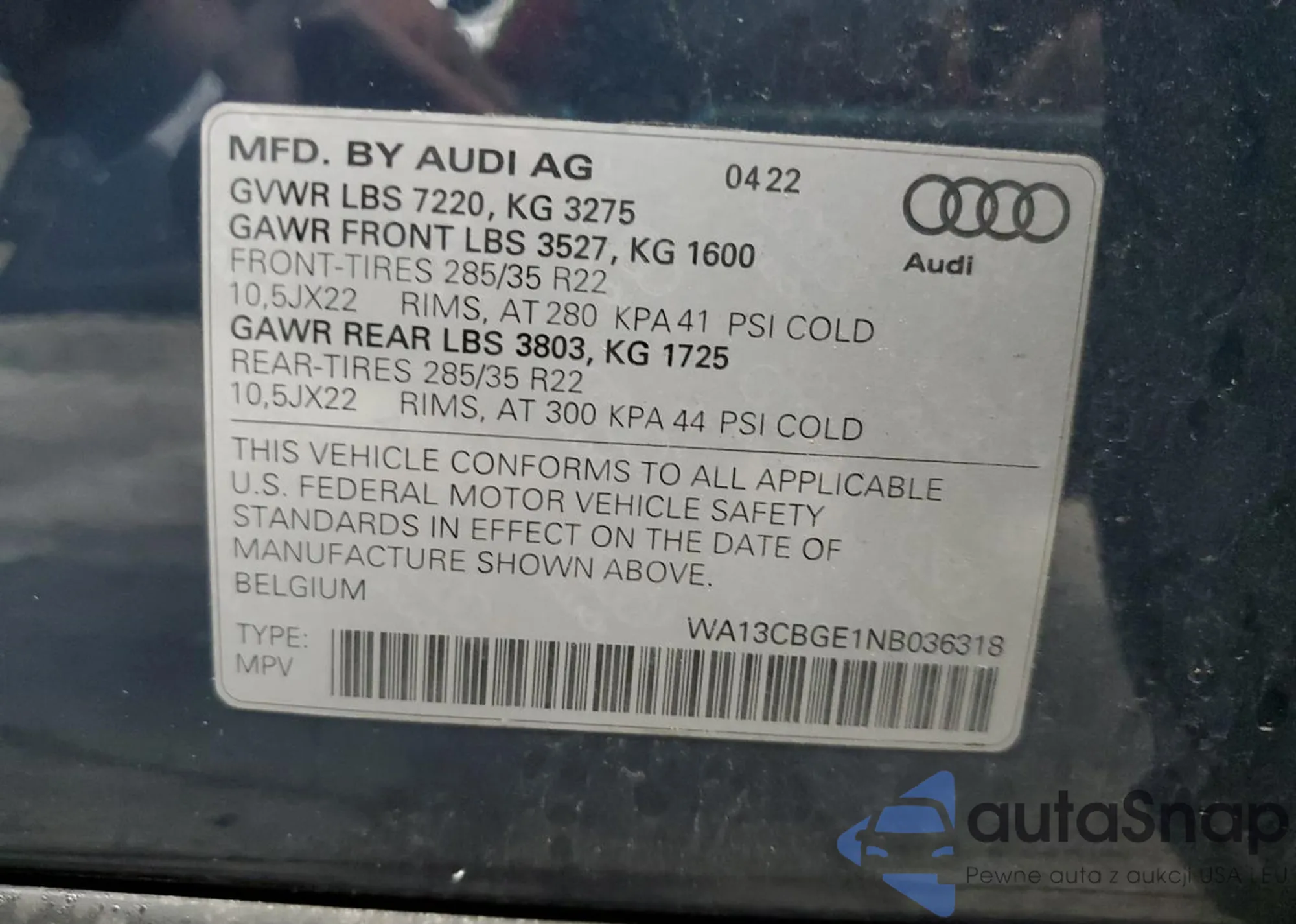 VIN: WA13CBGE1NB036318