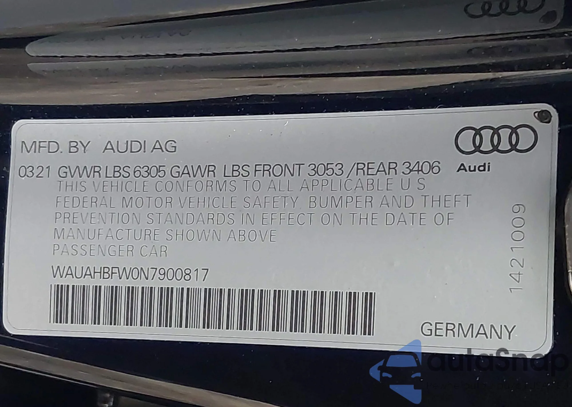 VIN: WAUAHBFW0N7900817