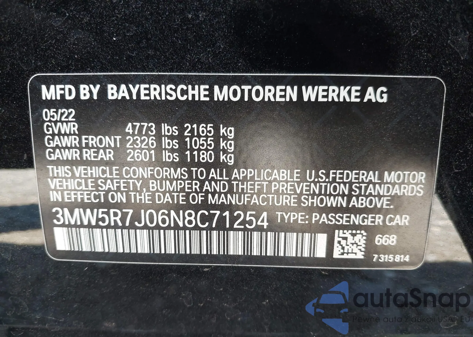 VIN: 3MW5R7J06N8C71254