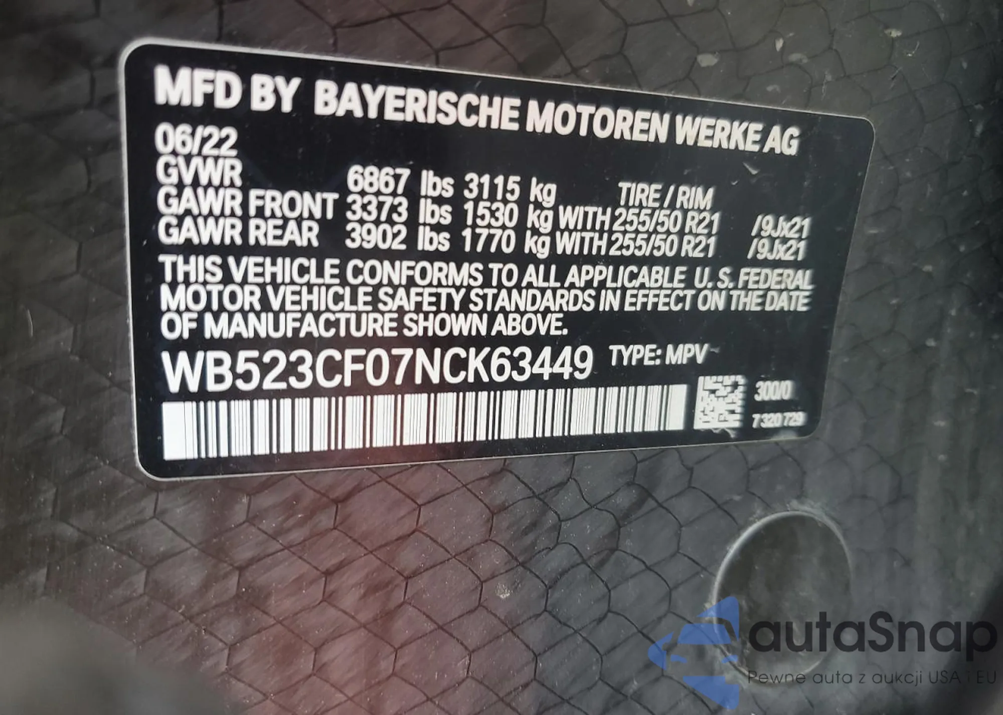 VIN: WB523CF07NCK63449