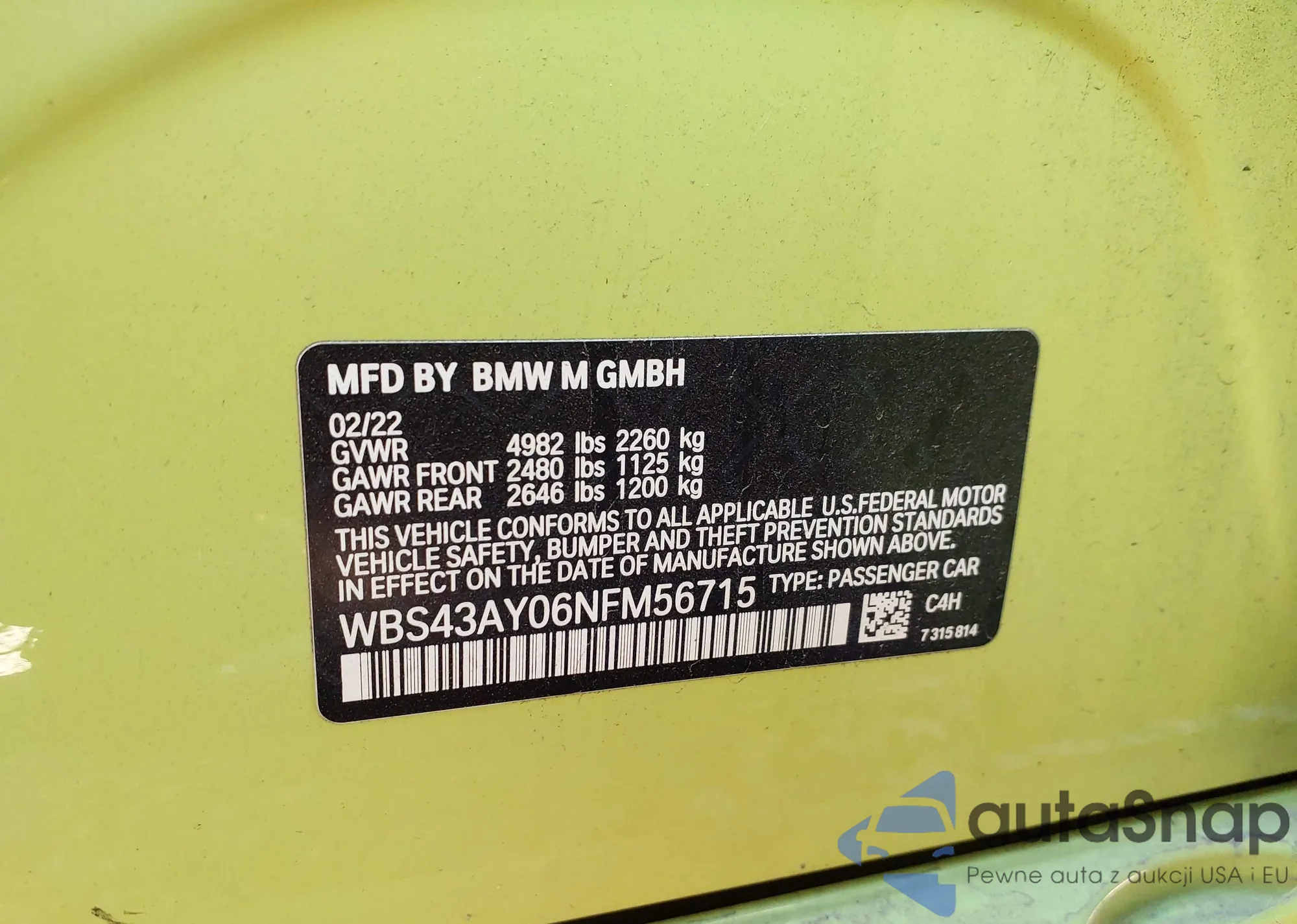 VIN: WBS43AY06NFM56715