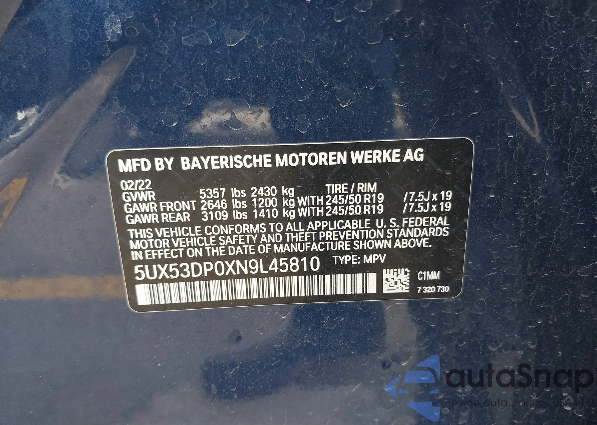 VIN: 5UX53DP0XN9L45810