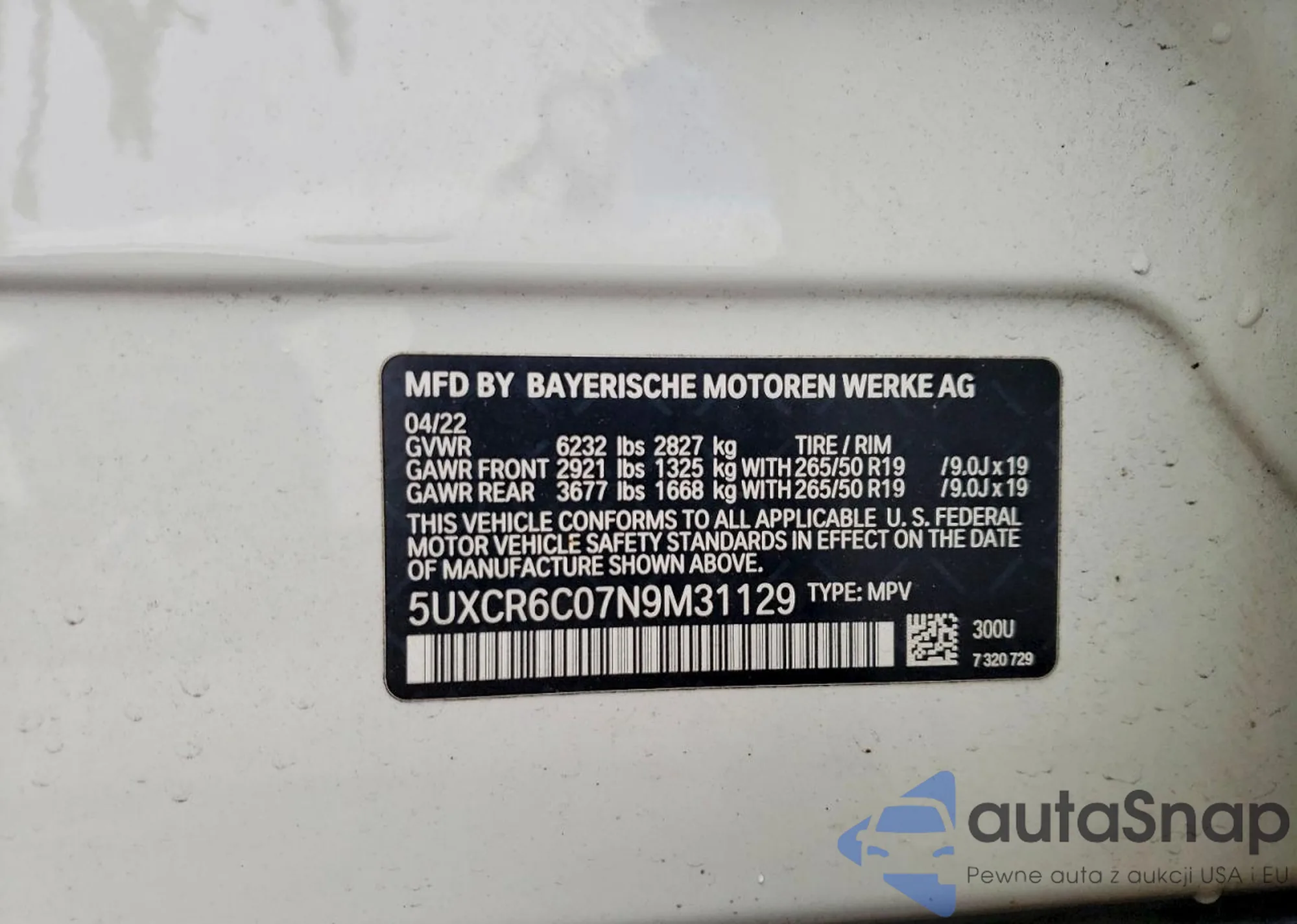 Автомобиль BMW X5 2022 (VIN 5UXCR6C07N9M31129) продаётся непроверенным продавцом. Рекомендуем проверить отчет Carfax и подтвердить возможность регистрации перед покупкой.