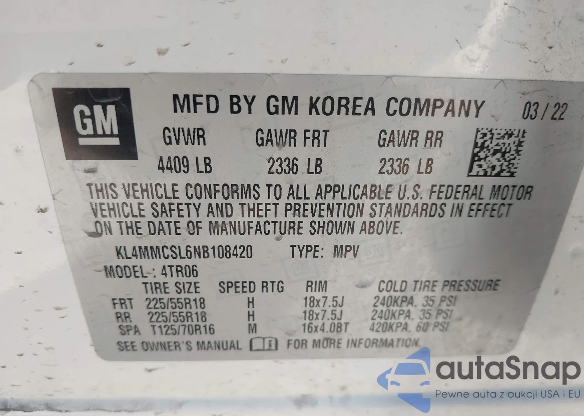 • VIN: KL4MMCSL6NB108420