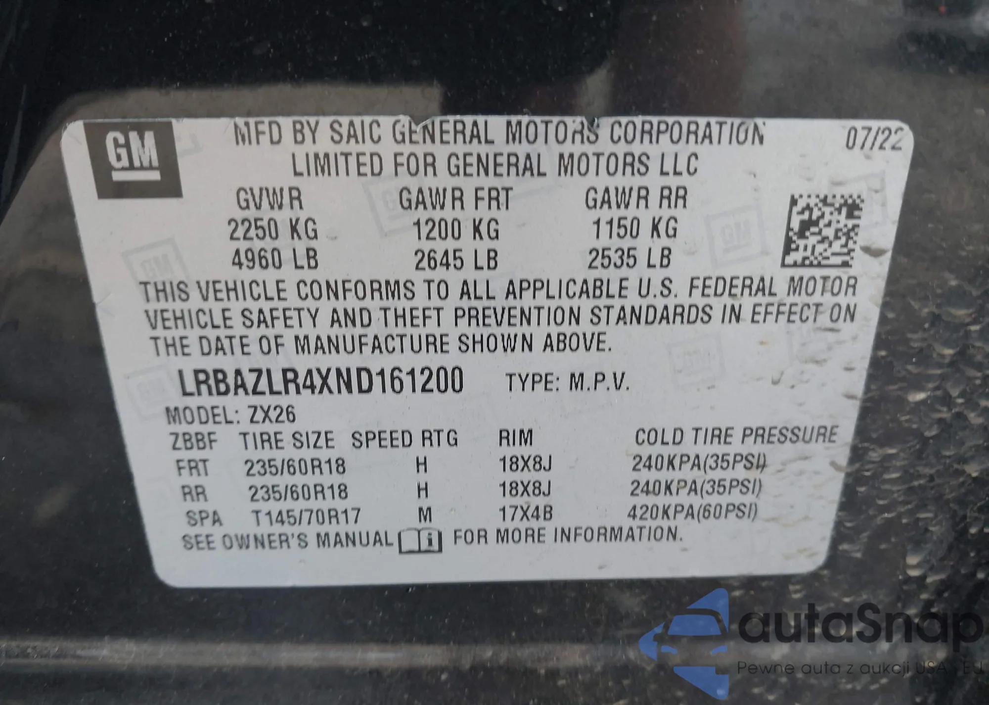 • VIN: LRBAZLR4XND161200