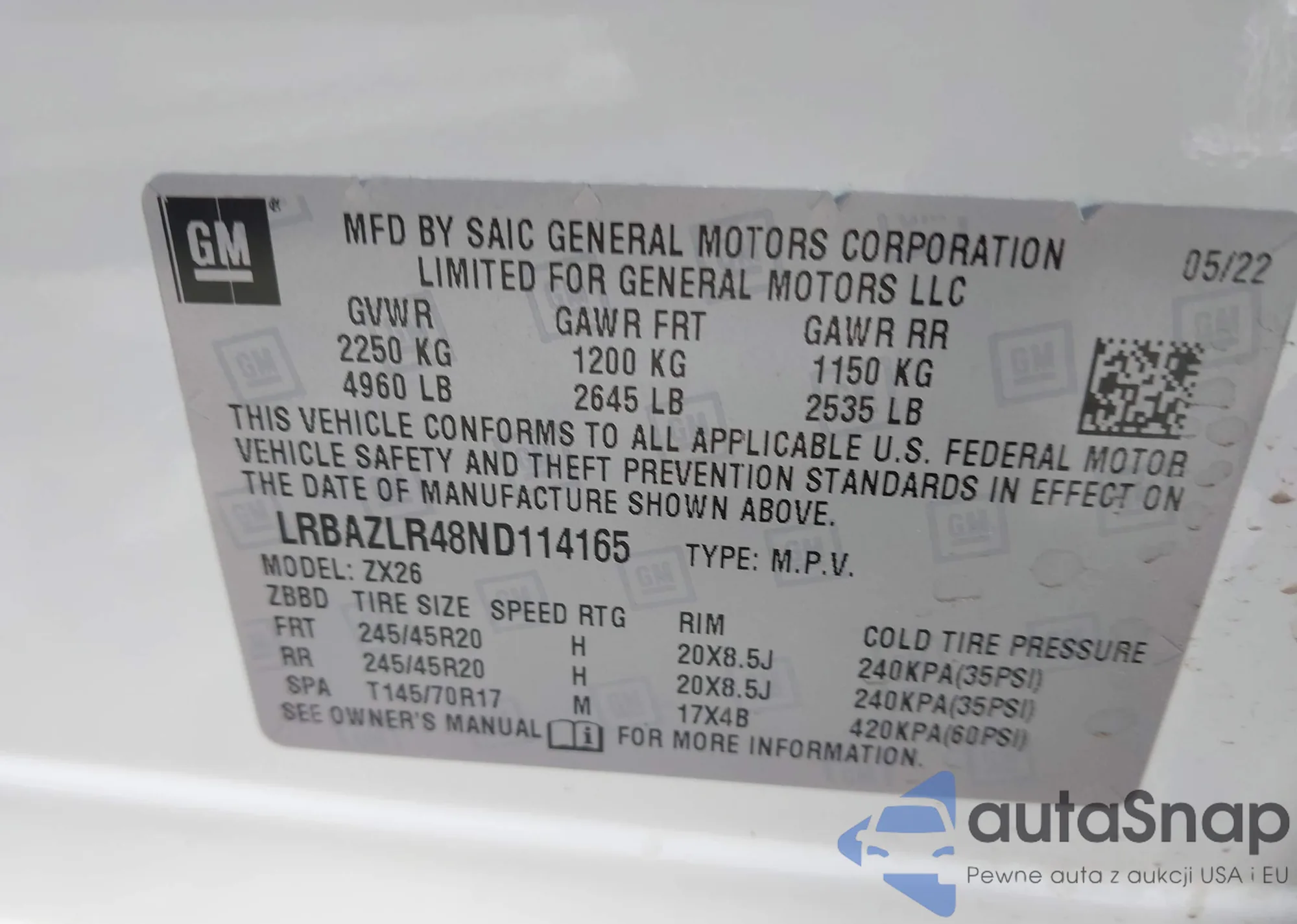 VIN: LRBAZLR48ND114165