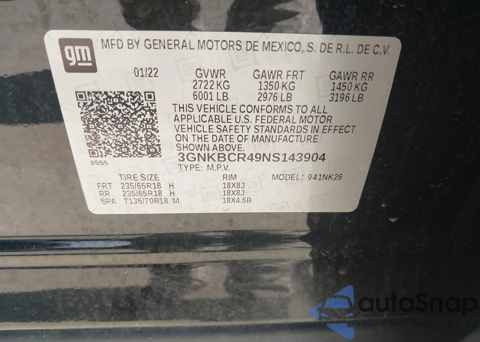 VIN: 3GNKBCR49NS143904