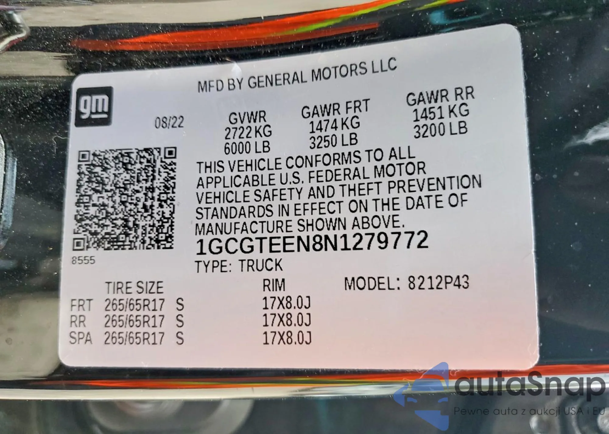 VIN: 1GCGTEEN8N1279772