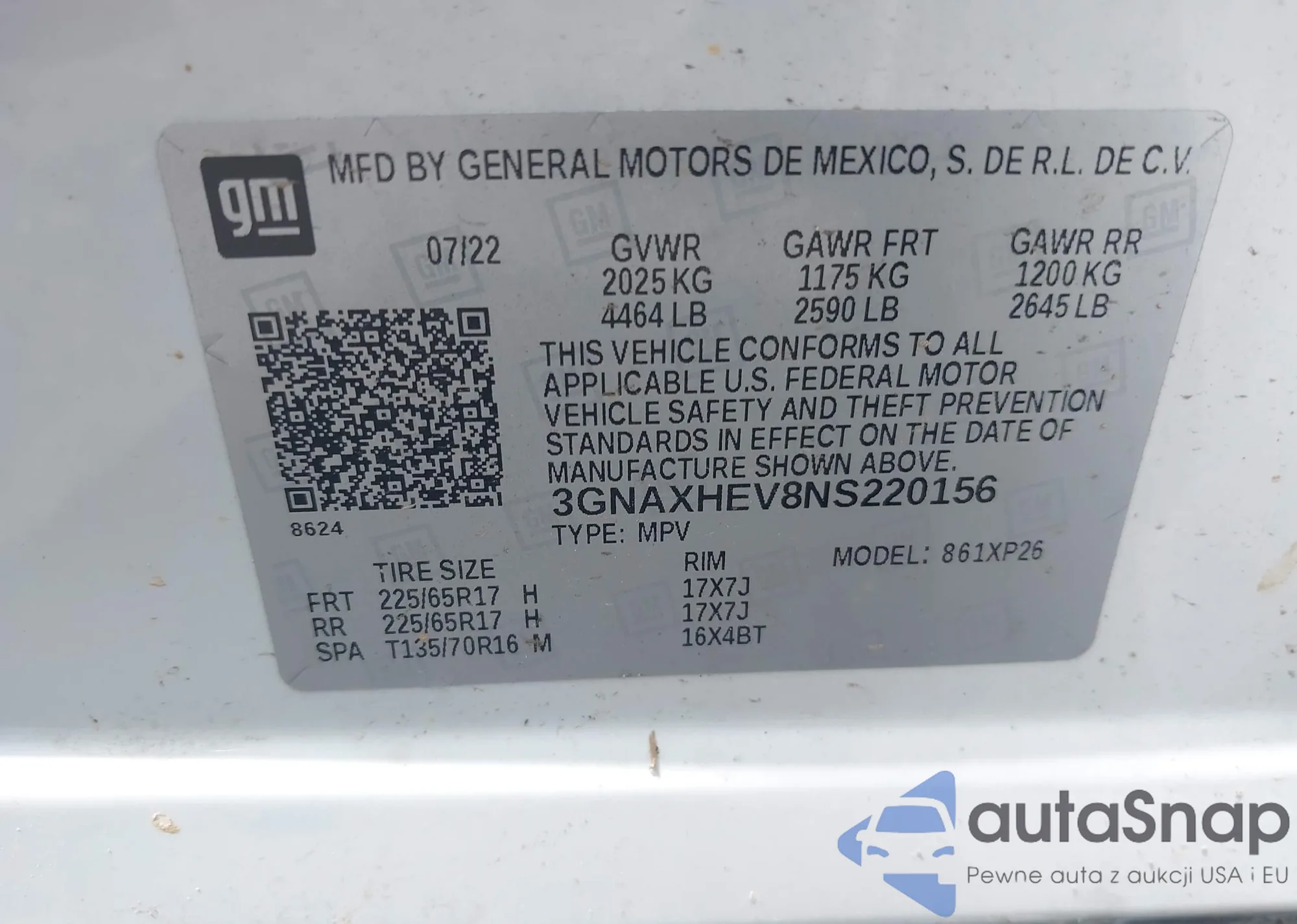 VIN: 3GNAXHEV8NS220156