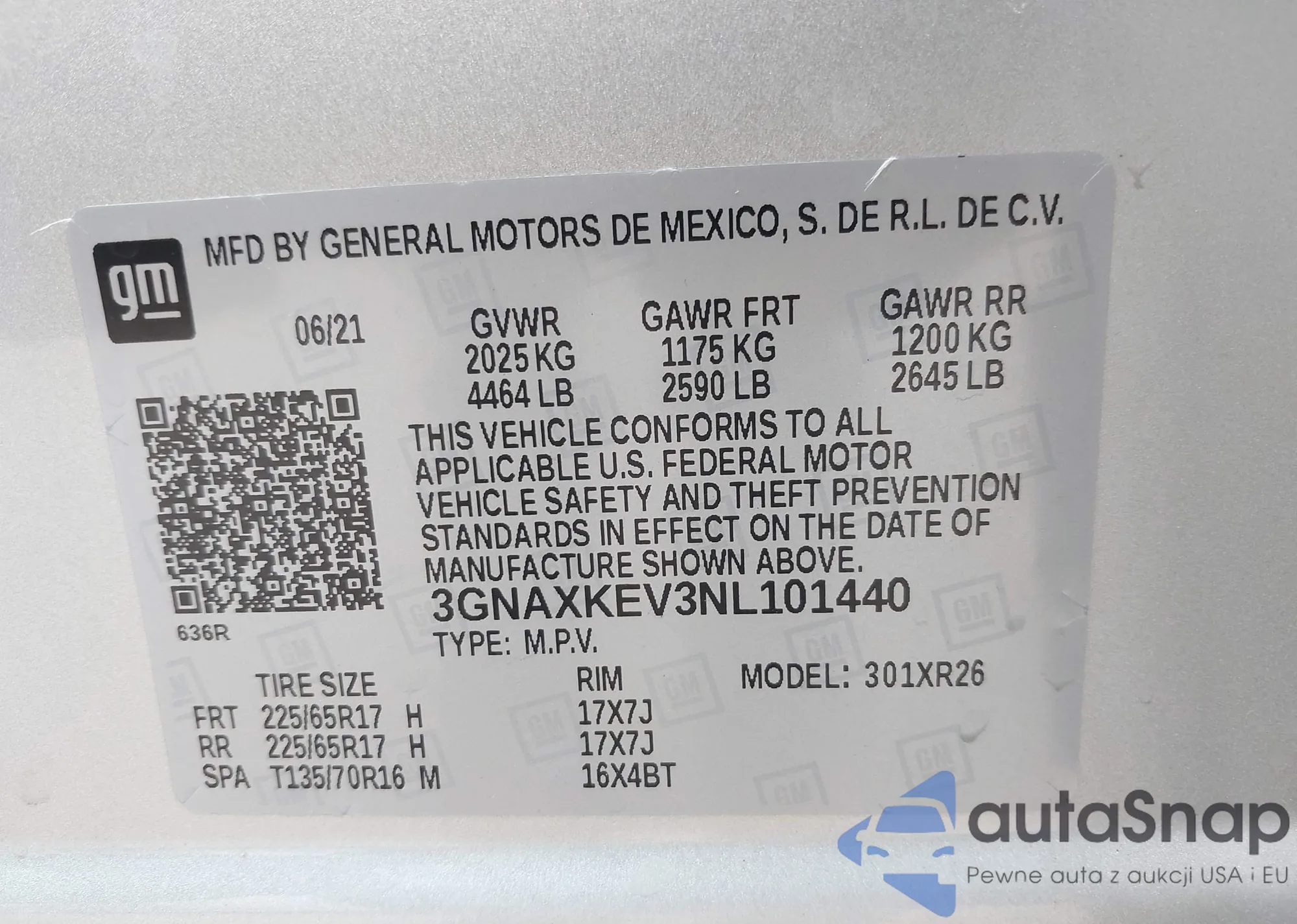 VIN: 3GNAXKEV3NL101440