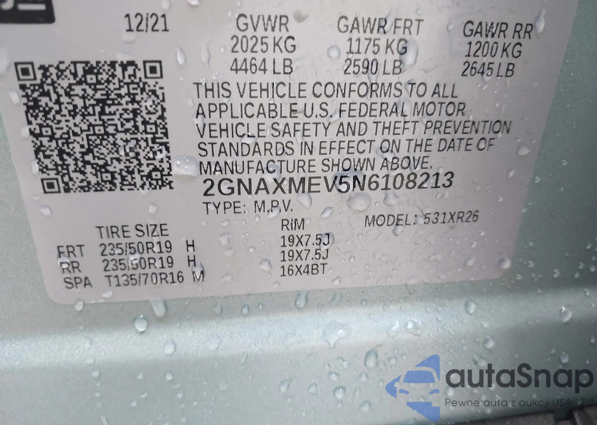 VIN: 2GNAXMEV5N6108213