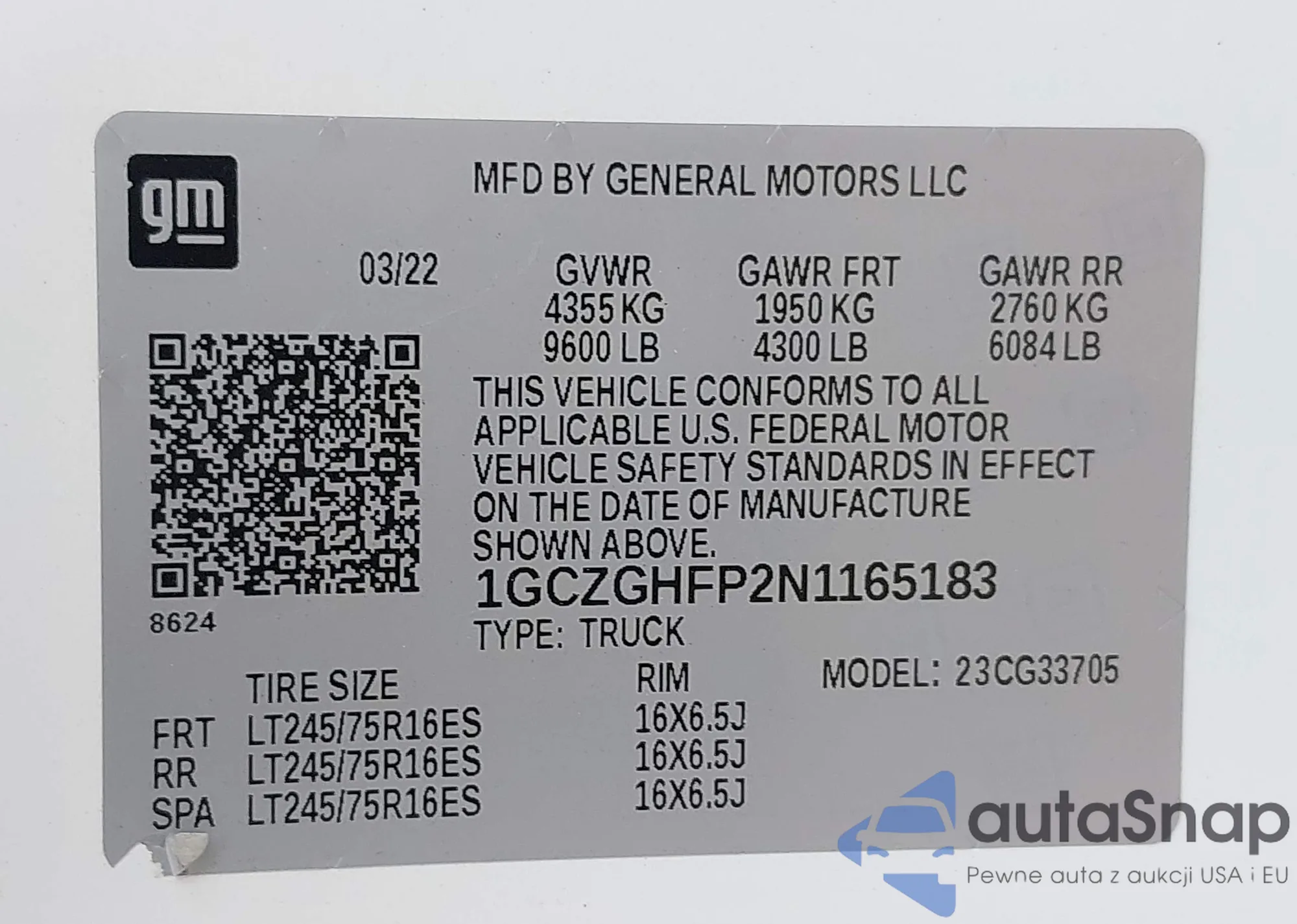 VIN: 1GCZGHFP2N1165183