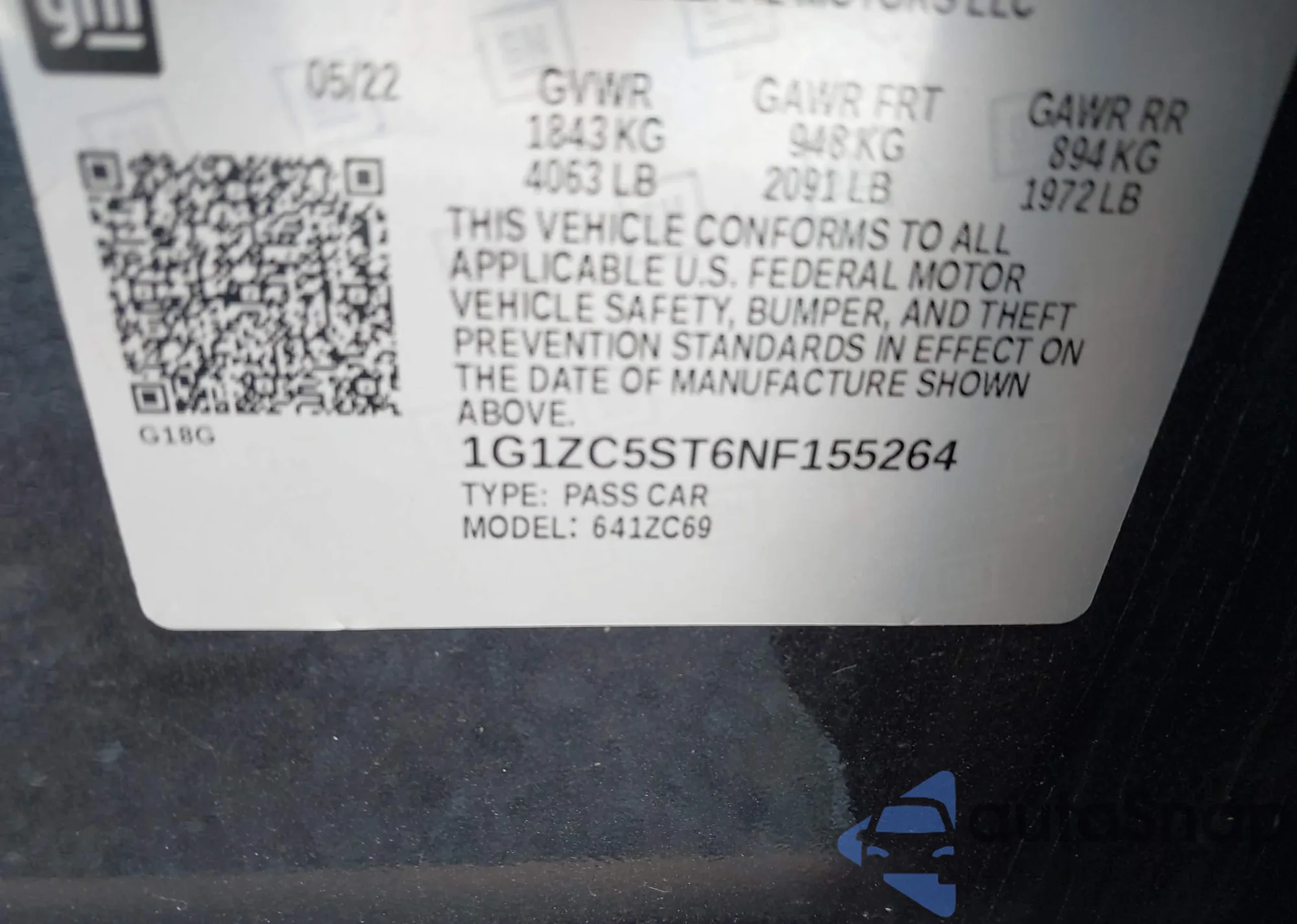VIN: 1G1ZC5ST6NF155264