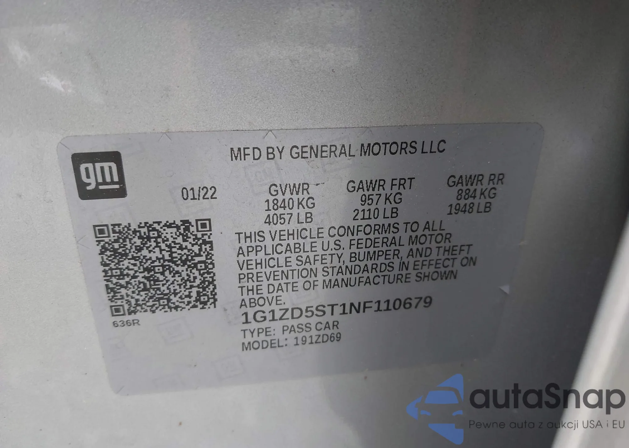 VIN: 1G1ZD5ST1NF110679