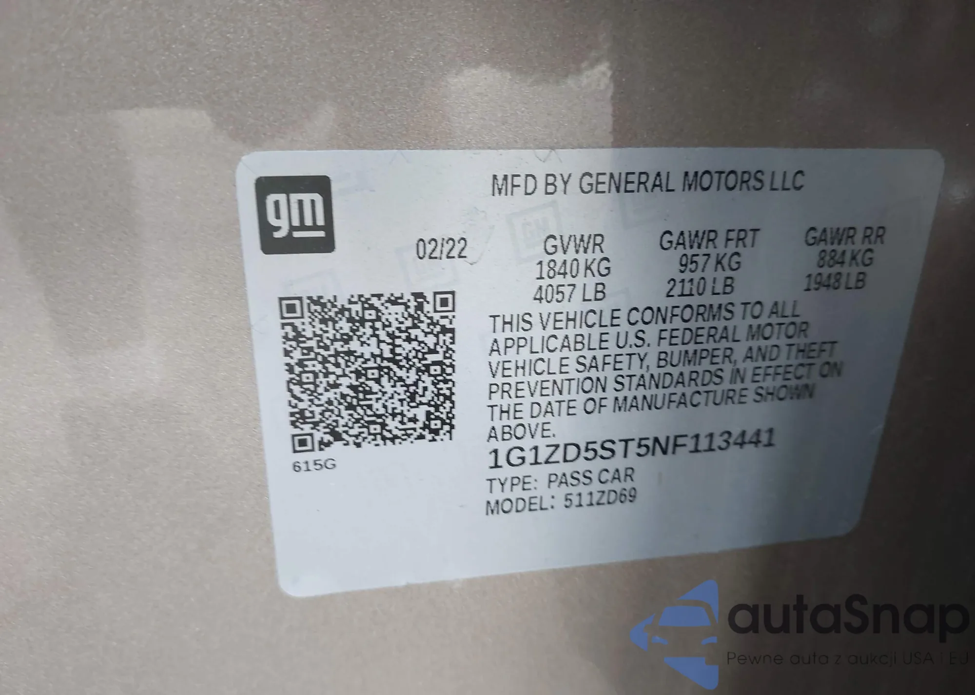VIN: 1G1ZD5ST5NF113441