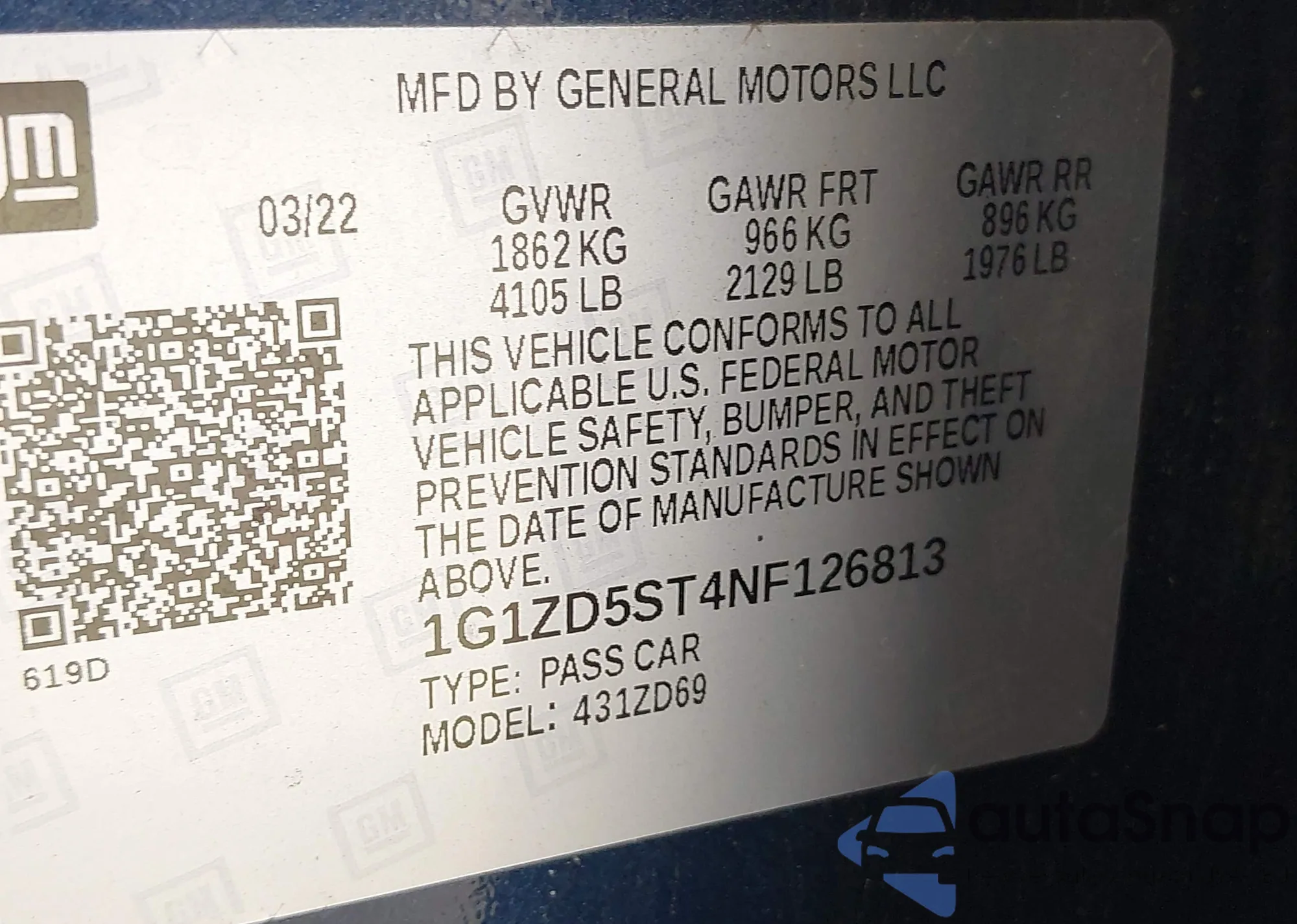 VIN: 1G1ZD5ST4NF126813