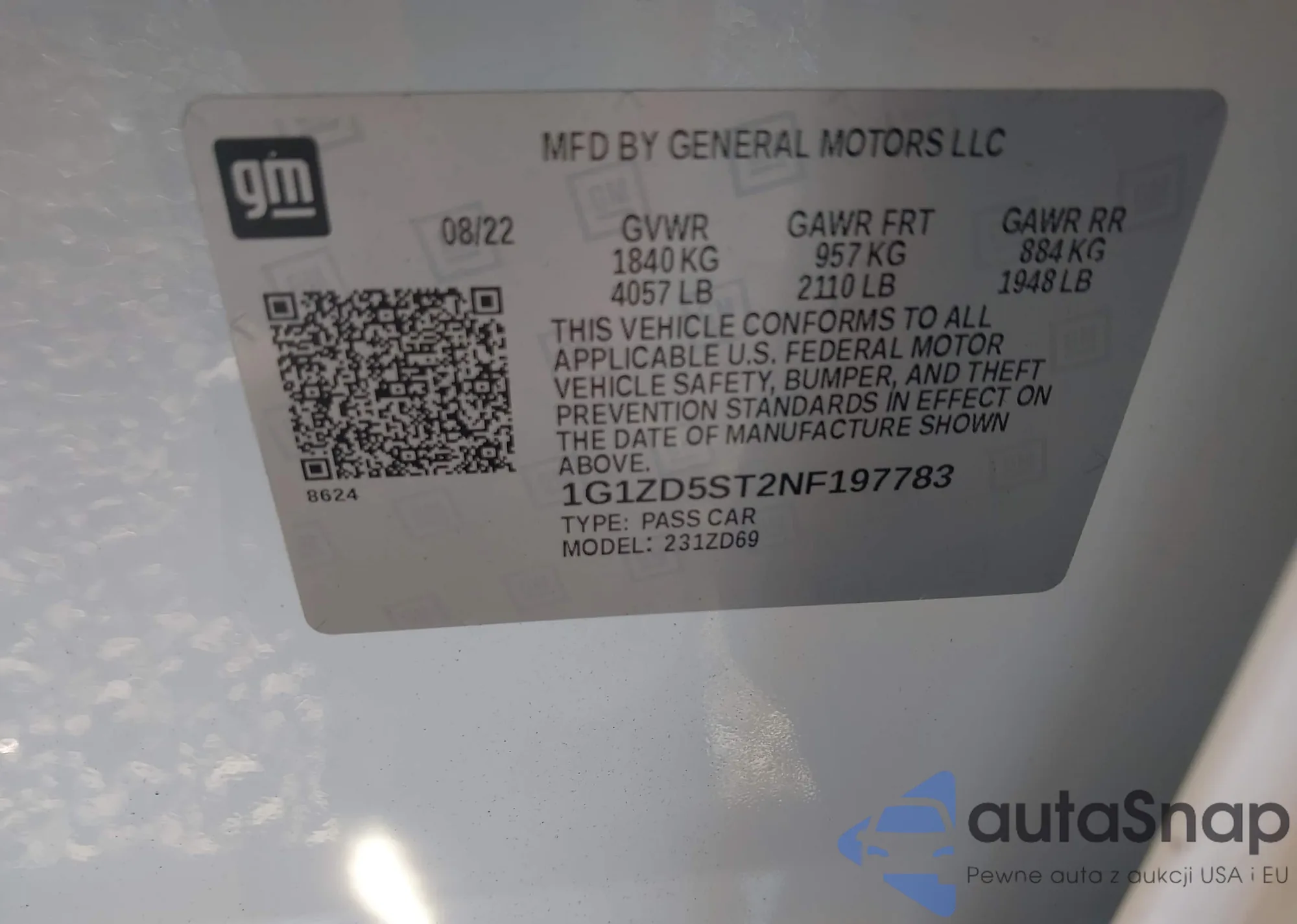 VIN: 1G1ZD5ST2NF197783