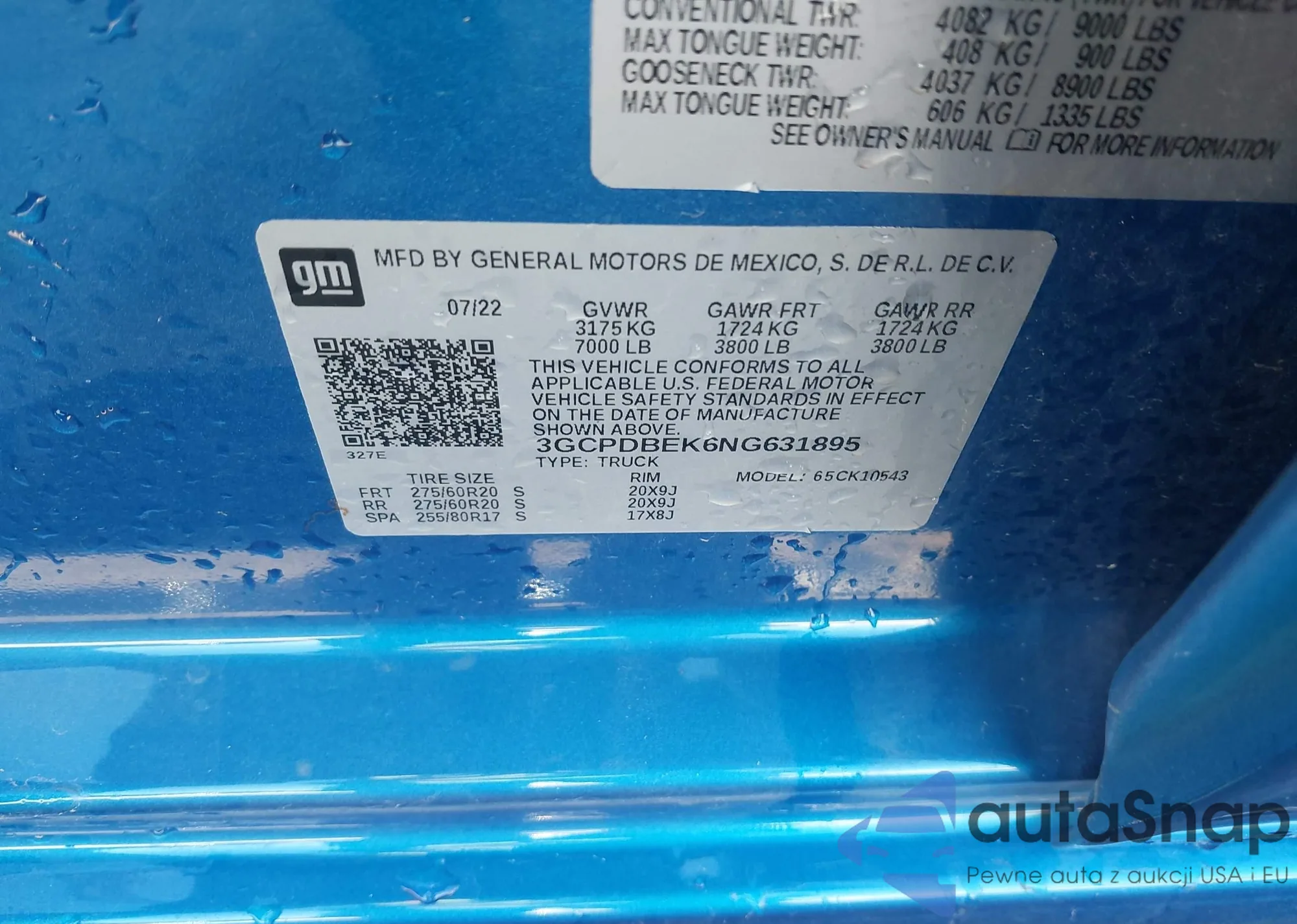 Автомобиль Chevrolet Silverado 2022 (VIN 3GCPDBEK6NG631895) ранее не участвовал в торгах. Документы чистые, пробег соответствует или ниже среднего по рынку. Продаётся страховой компанией — рекомендуем покупку. Доставка в порт займет около 6–8 недель.