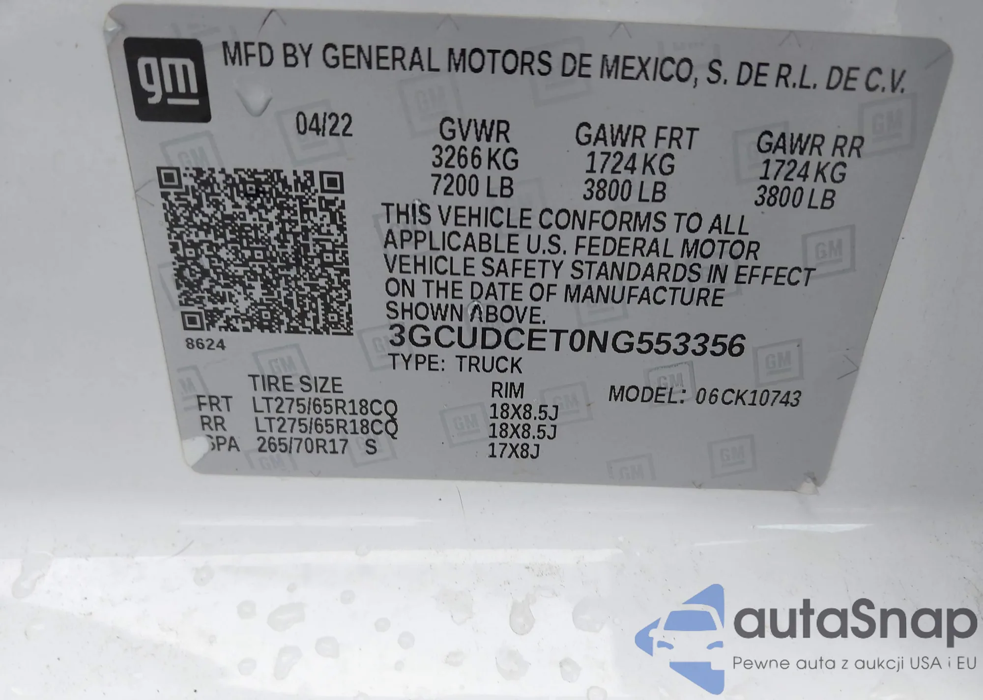 Автомобиль Chevrolet Silverado 2022 (VIN 3GCUDCET0NG553356) имеет документы, препятствующие регистрации. Могут возникнуть сложности при экспорте и регистрации. Обратитесь к экспертам AutaSnap для поиска альтернатив.