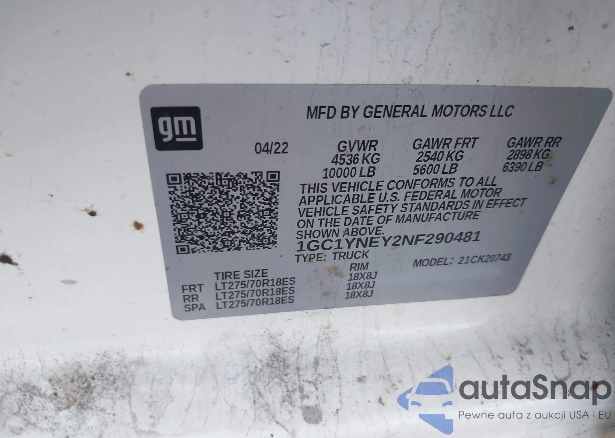 • VIN: 1GC1YNEY2NF290481
