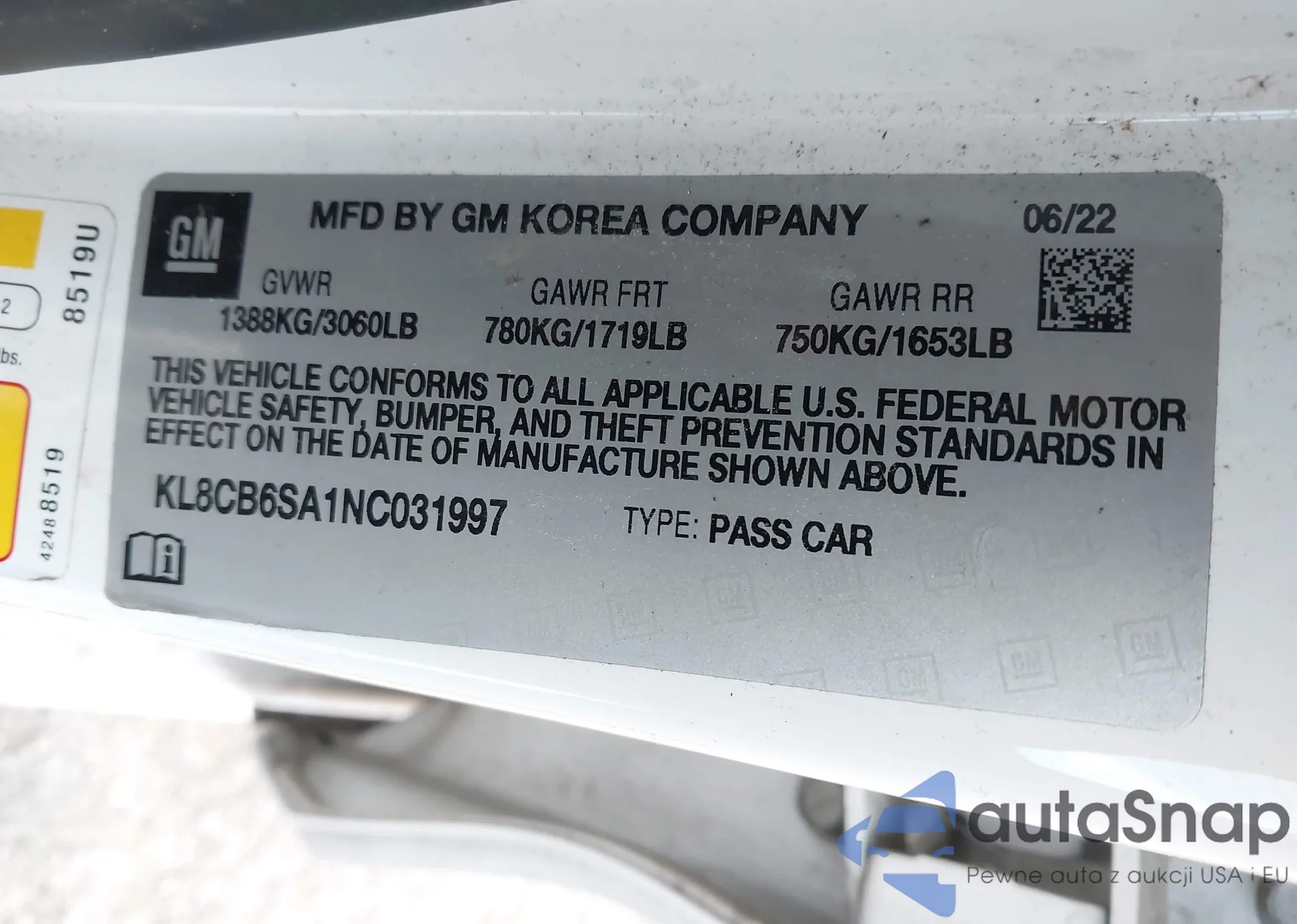 Автомобиль Chevrolet Spark 2022 (VIN KL8CB6SA1NC031997) ранее не участвовал в торгах. Документы чистые, пробег соответствует или ниже среднего по рынку. Продаётся страховой компанией — рекомендуем покупку. Доставка в порт займет около 6–8 недель.