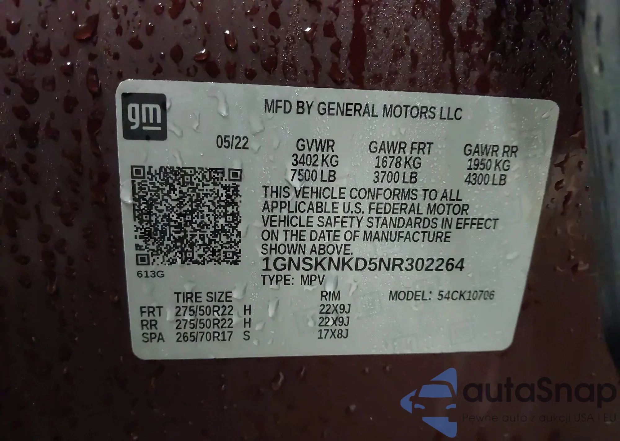 • VIN: 1GNSKNKD5NR302264