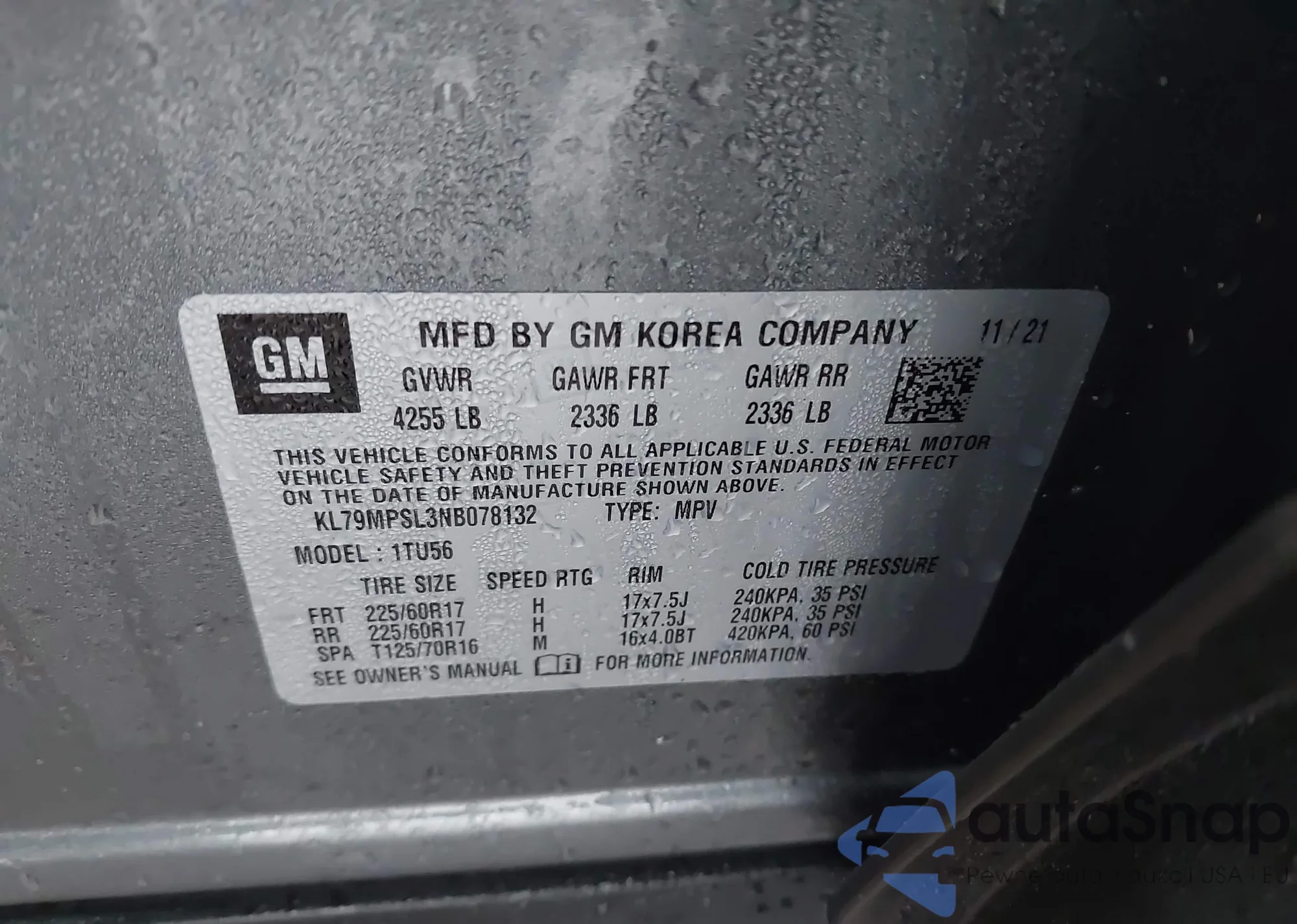 VIN: KL79MPSL3NB078132