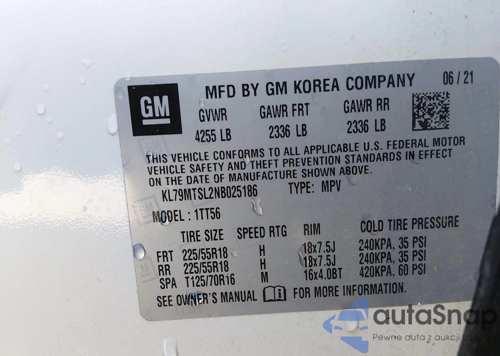 Автомобиль Chevrolet TrailBlazer 2022 (VIN KL79MTSL2NB025186) ранее не участвовал в торгах. Документы чистые, пробег соответствует или ниже среднего по рынку. Продаётся страховой компанией — рекомендуем покупку. Доставка в порт займет около 6–8 недель.