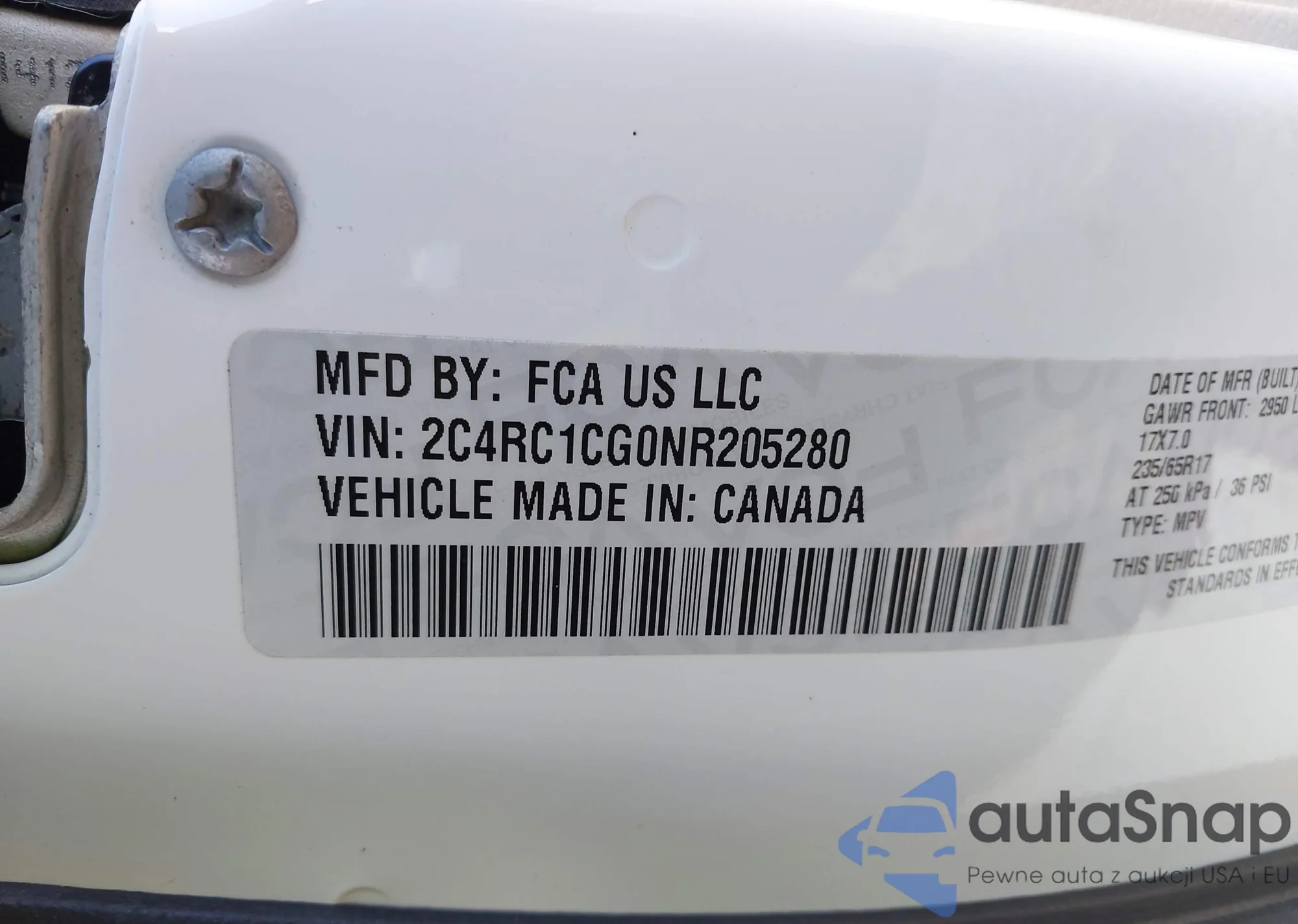 • VIN: 2C4RC1CG0NR205280