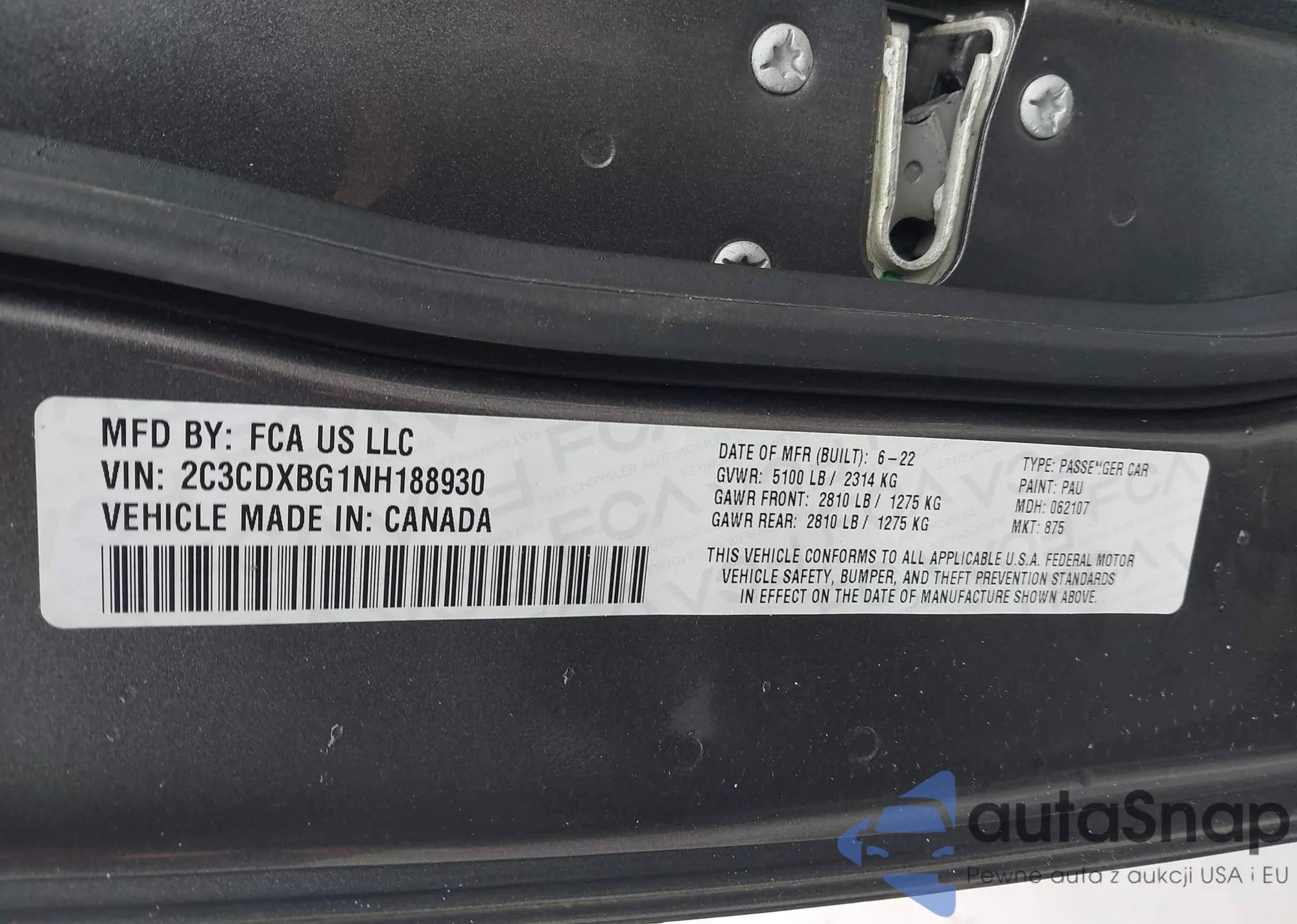 Автомобиль Dodge Charger 2022 (VIN 2C3CDXBG1NH188930) ранее не участвовал в торгах. Документы чистые, пробег соответствует или ниже среднего по рынку. Продаётся страховой компанией — рекомендуем покупку. Доставка в порт займет около 6–8 недель.