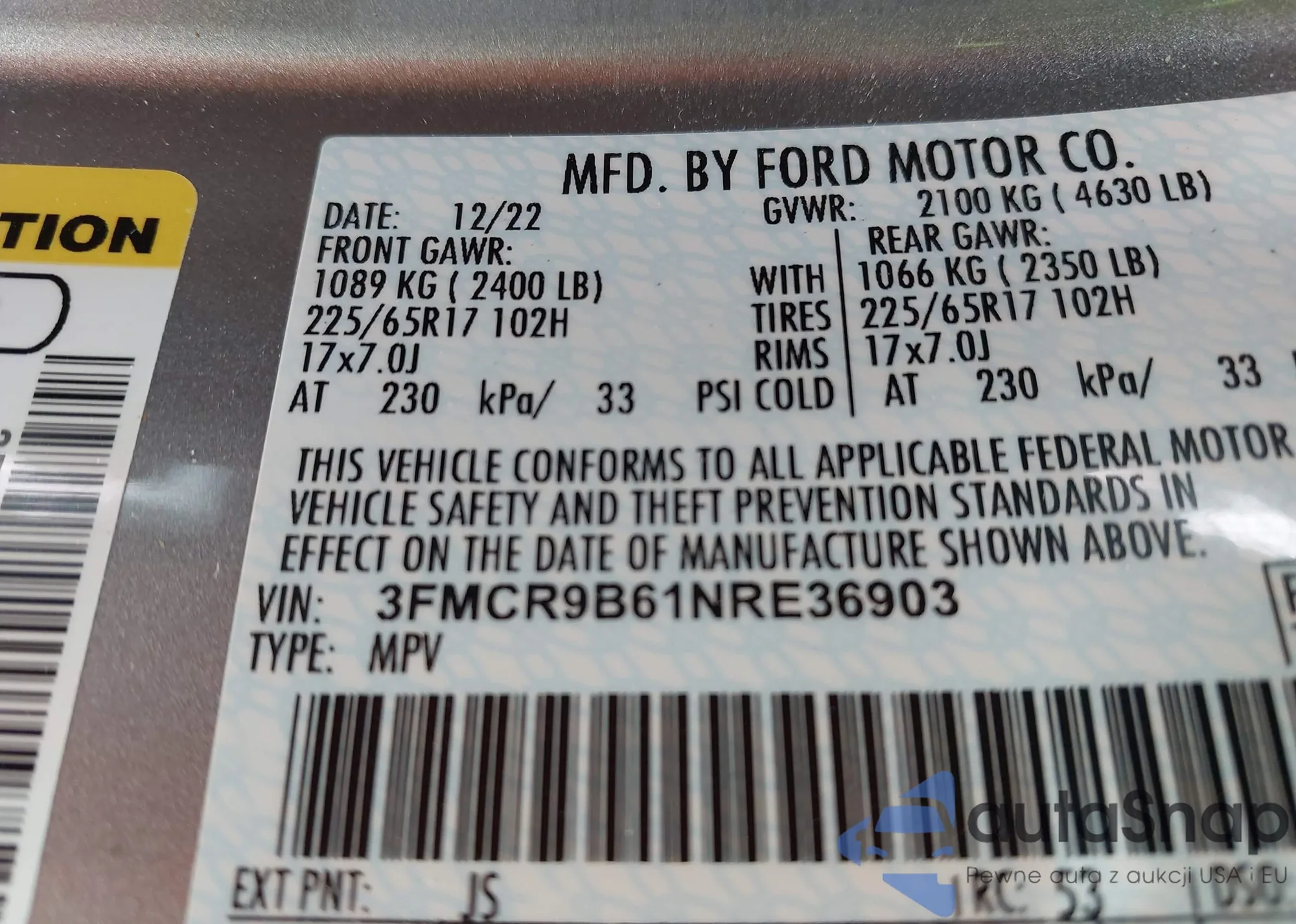 VIN: 3FMCR9B61NRE36903