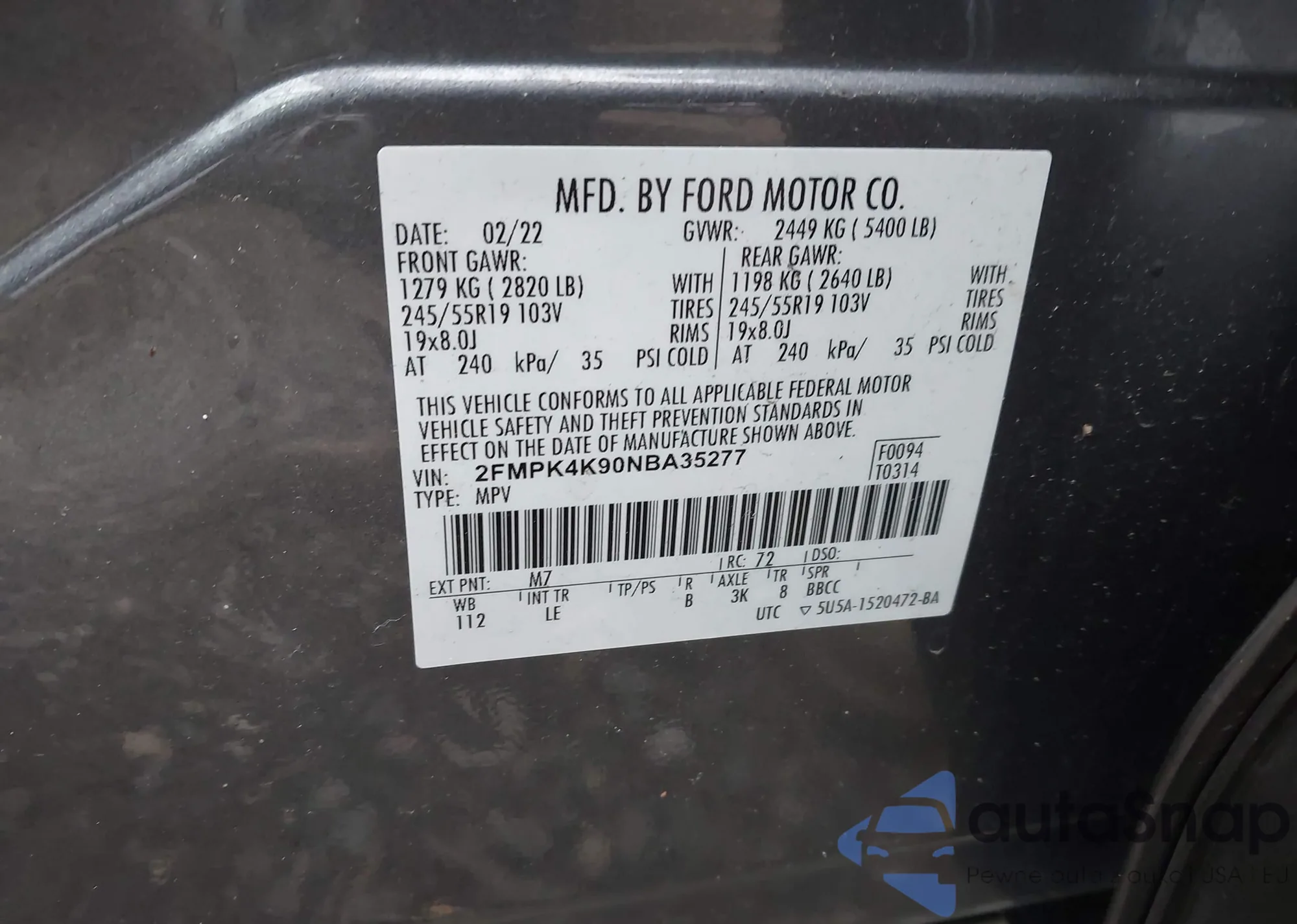 VIN: 2FMPK4K90NBA35277