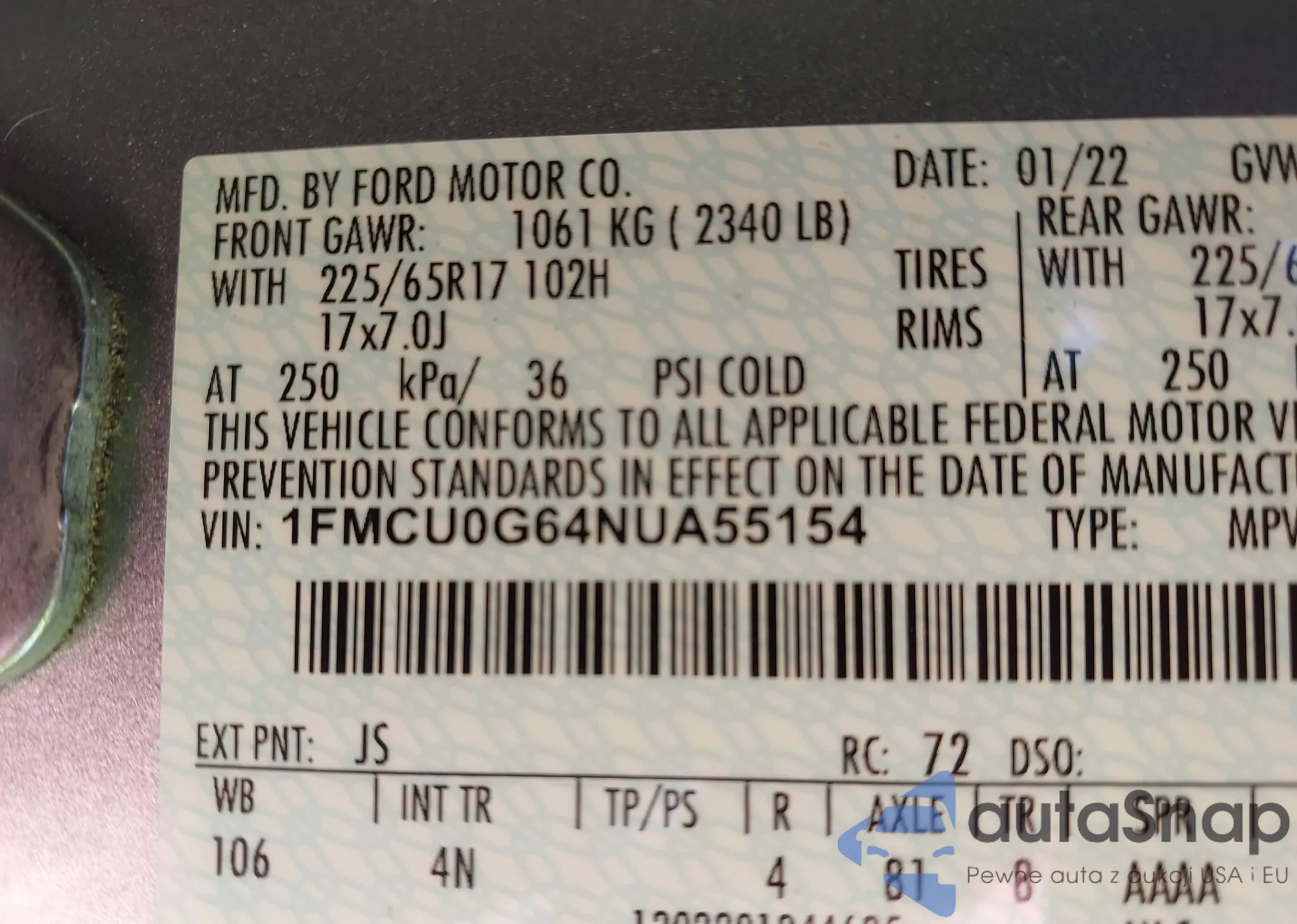 VIN: 1FMCU0G64NUA55154