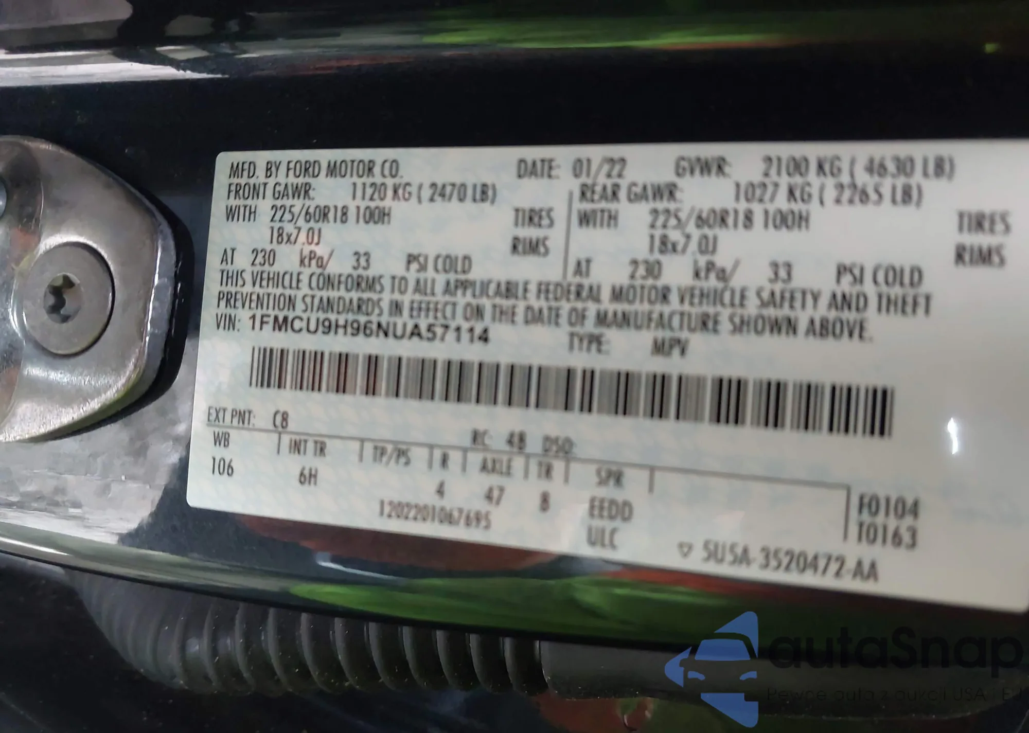 VIN: 1FMCU9H96NUA57114
