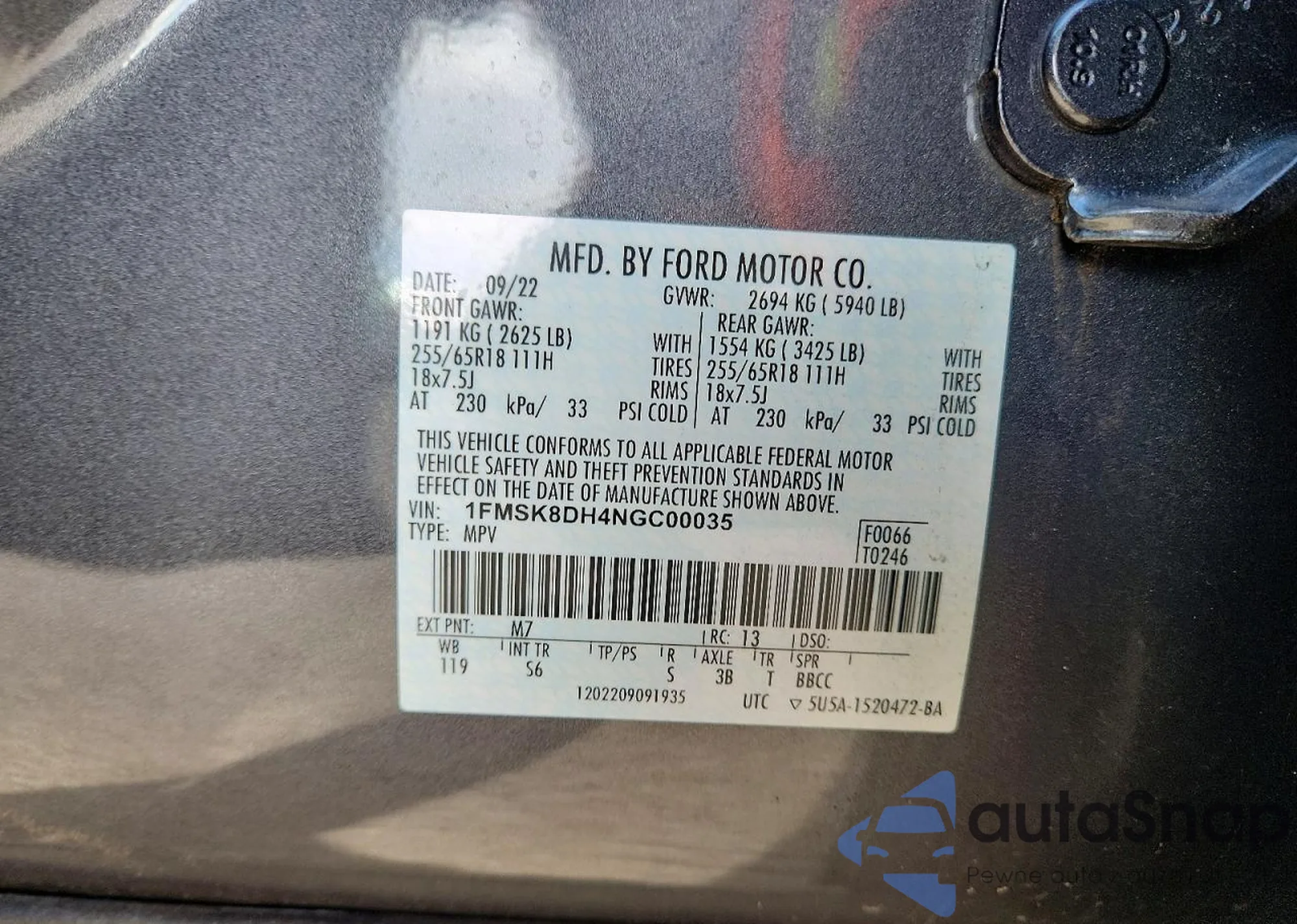 VIN: 1FMSK8DH4NGC00035