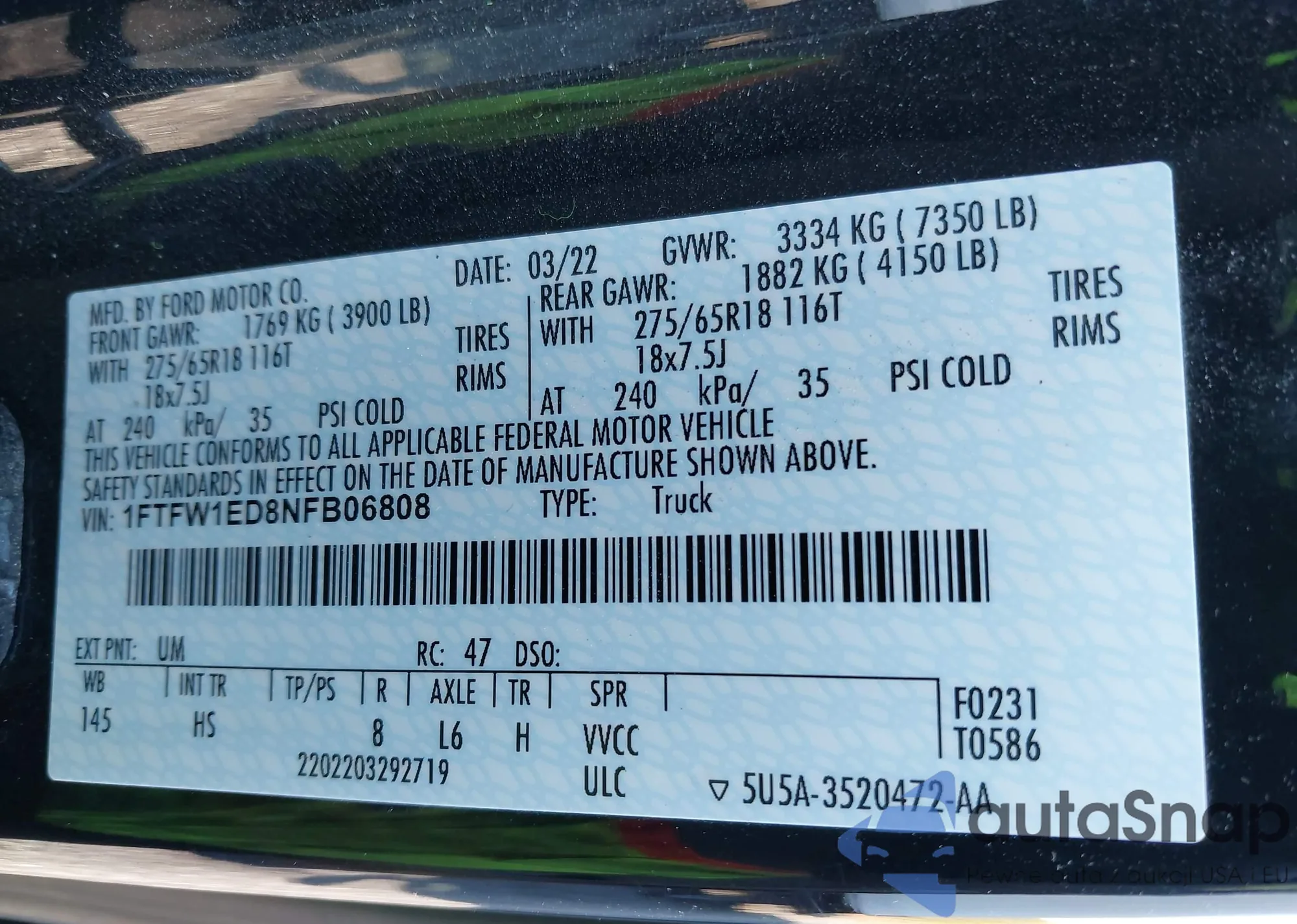 Автомобиль Ford F-150 2022 (VIN 1FTFW1ED8NFB06808) уже участвовал в торгах 1 раз(а) и/или продаётся непроверенным продавцом. Рекомендуем проверить отчет Carfax и подтвердить возможность регистрации перед покупкой.