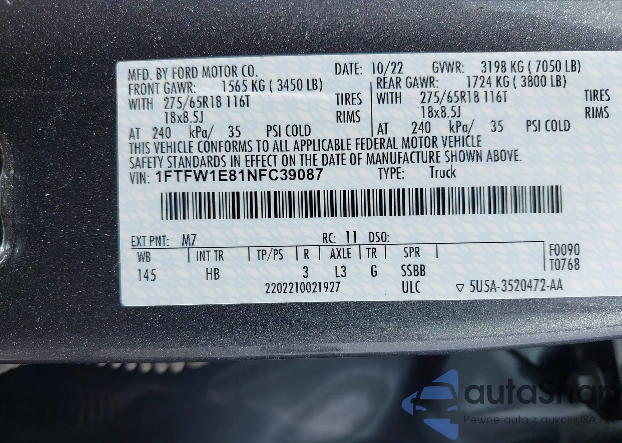 VIN: 1FTFW1E81NFC39087