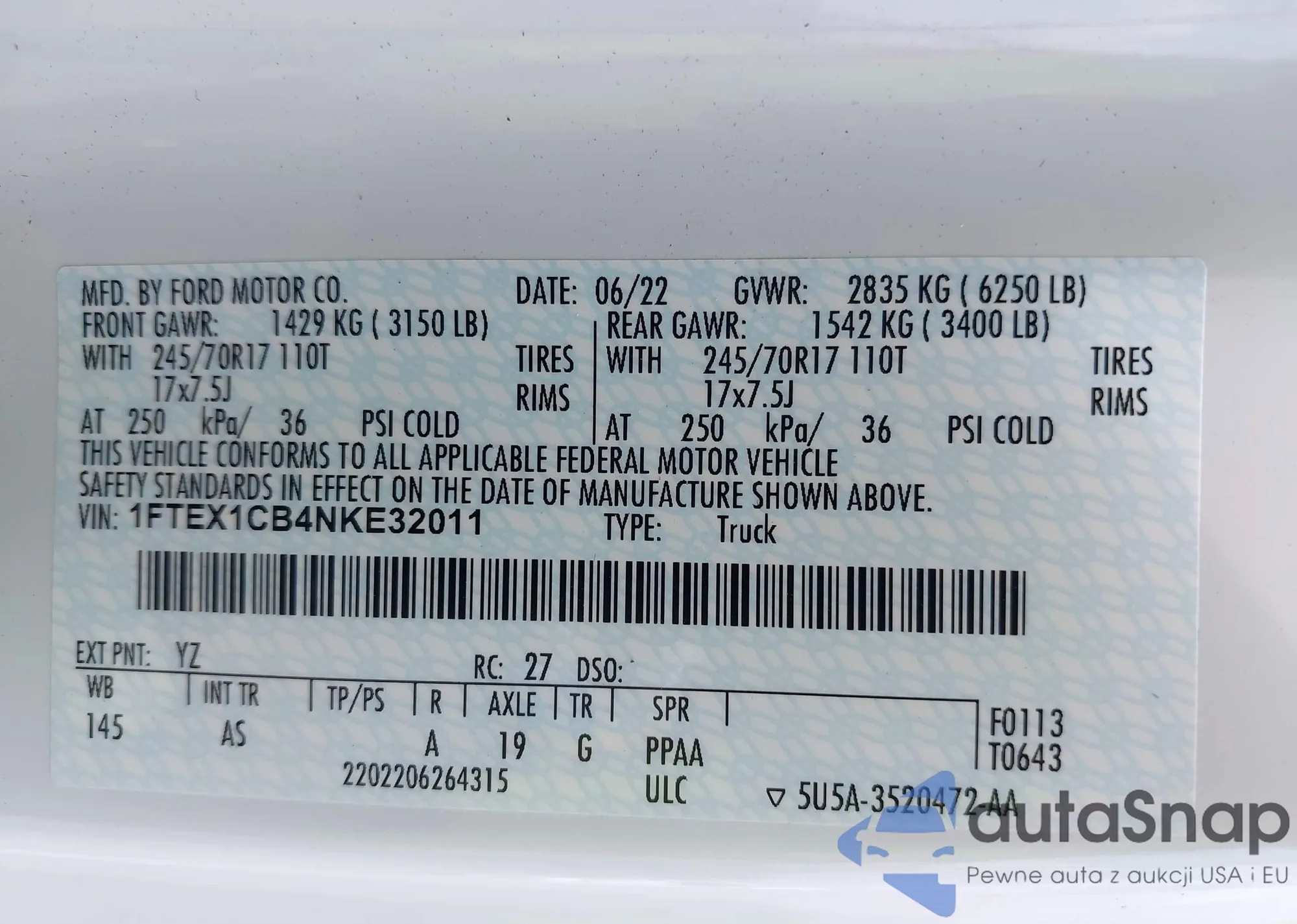 VIN: 1FTEX1CB4NKE32011
