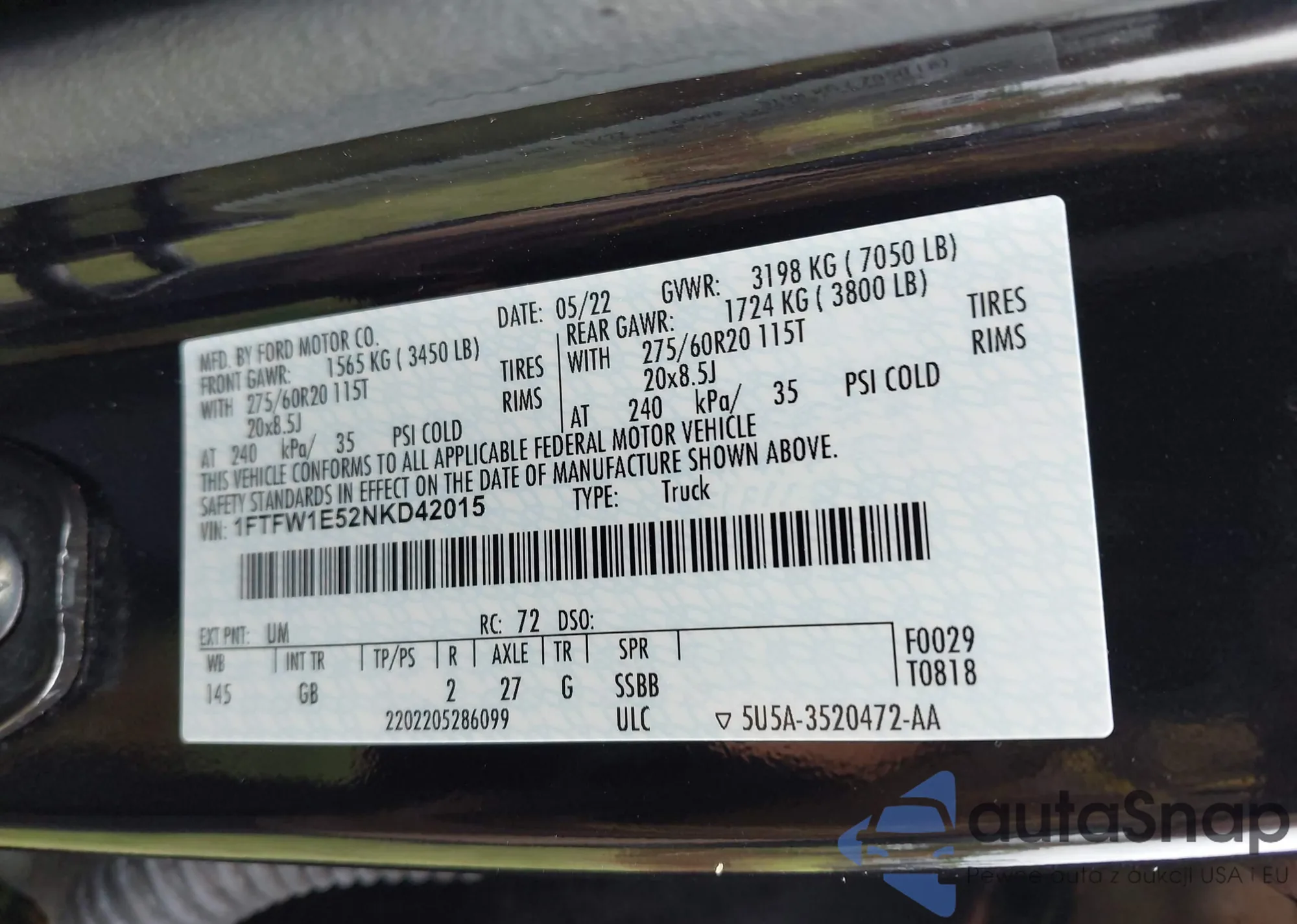VIN: 1FTFW1E52NKD42015