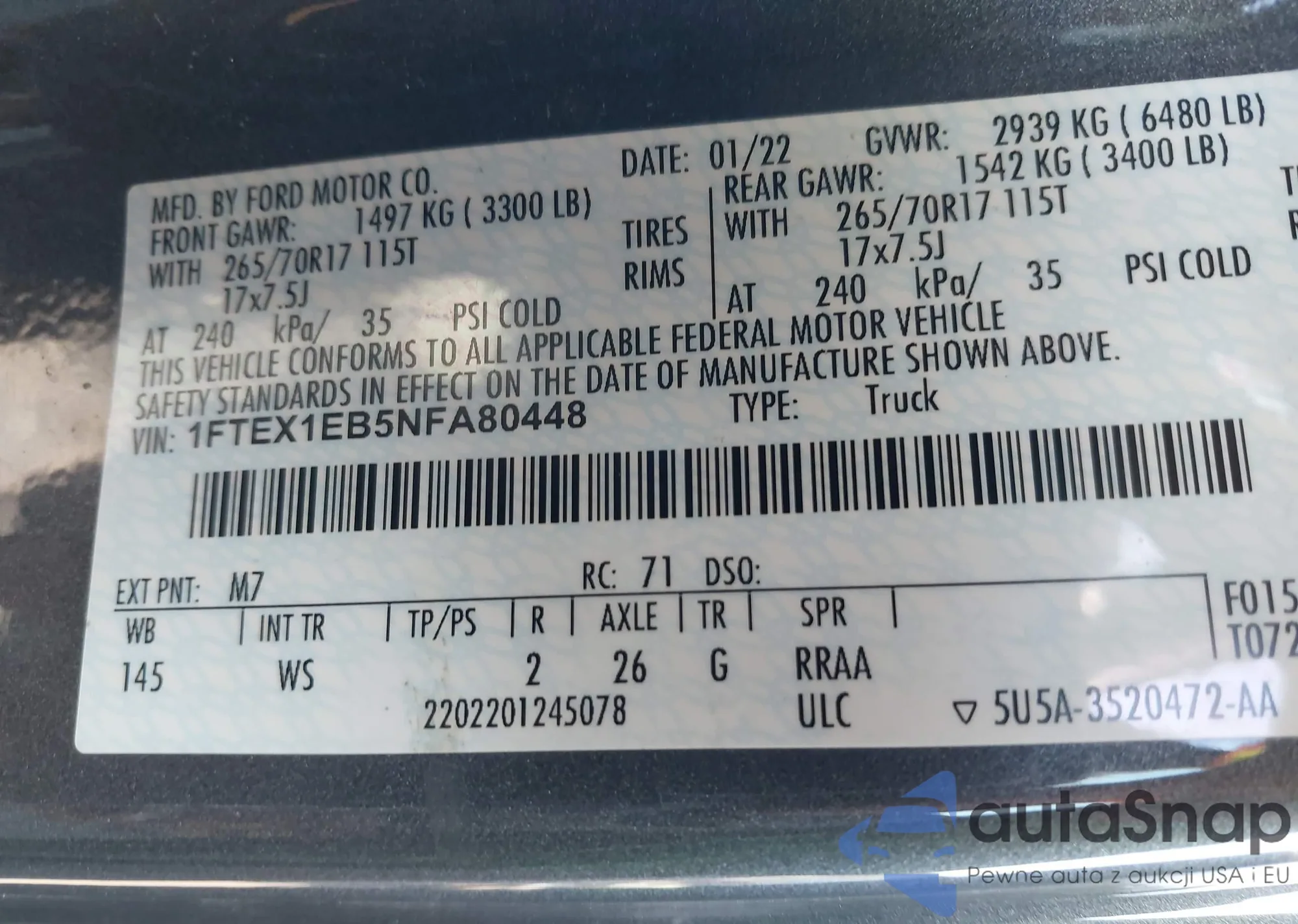 Ford F-150 2022 – История автомобиля (продан на IAAI)