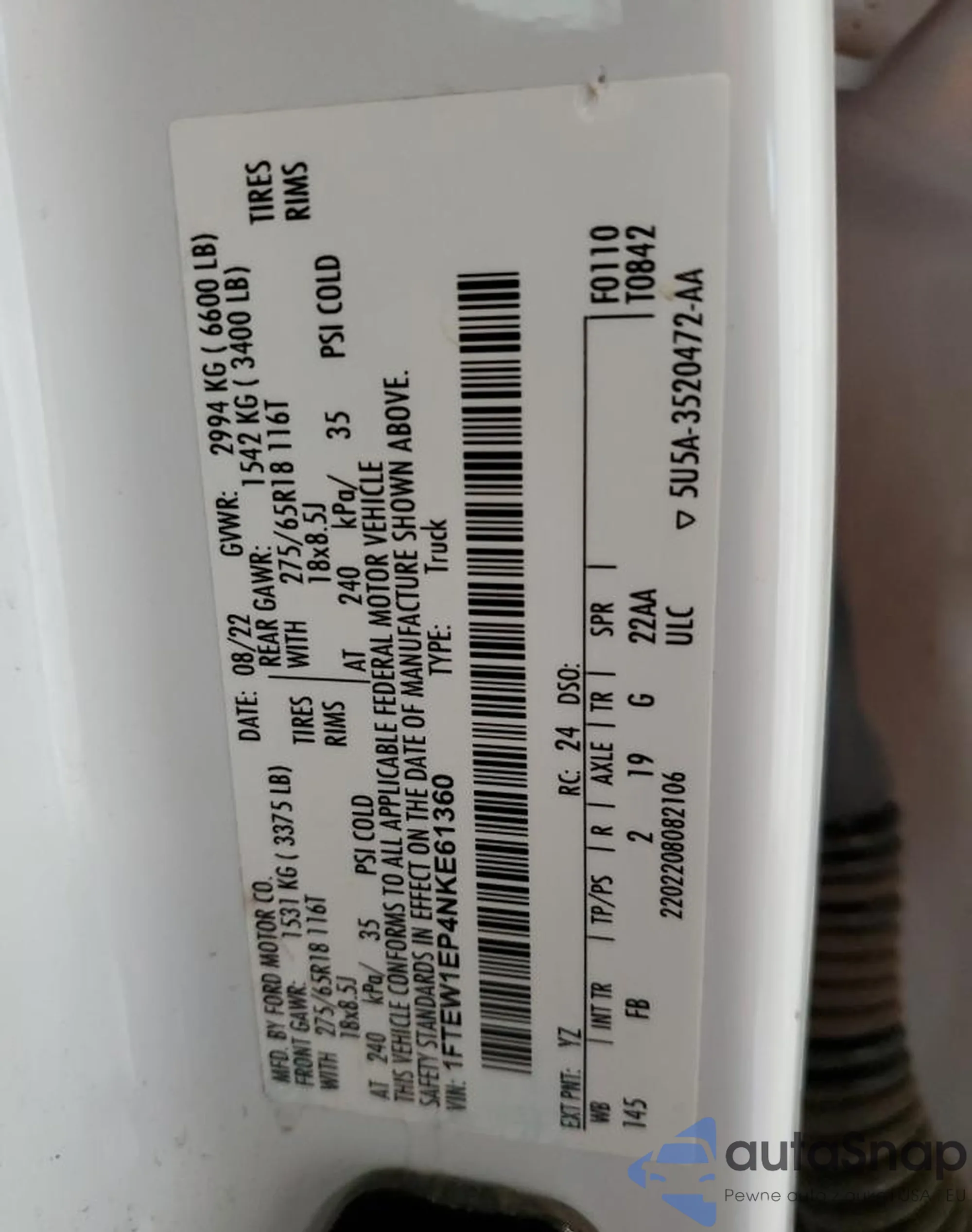 VIN: 1FTEW1EP4NKE61360