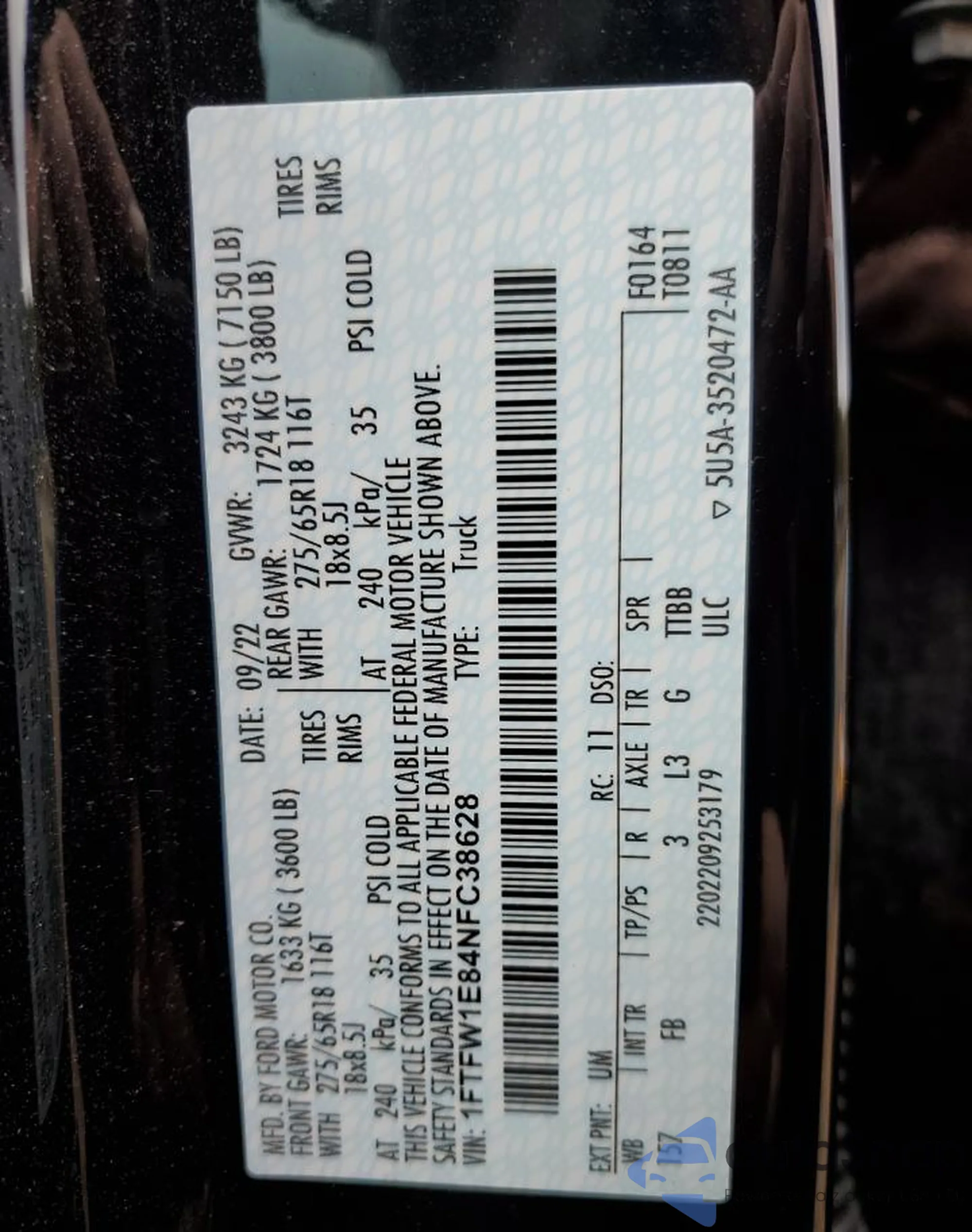 1FTFW1E84NFC38628 COPART