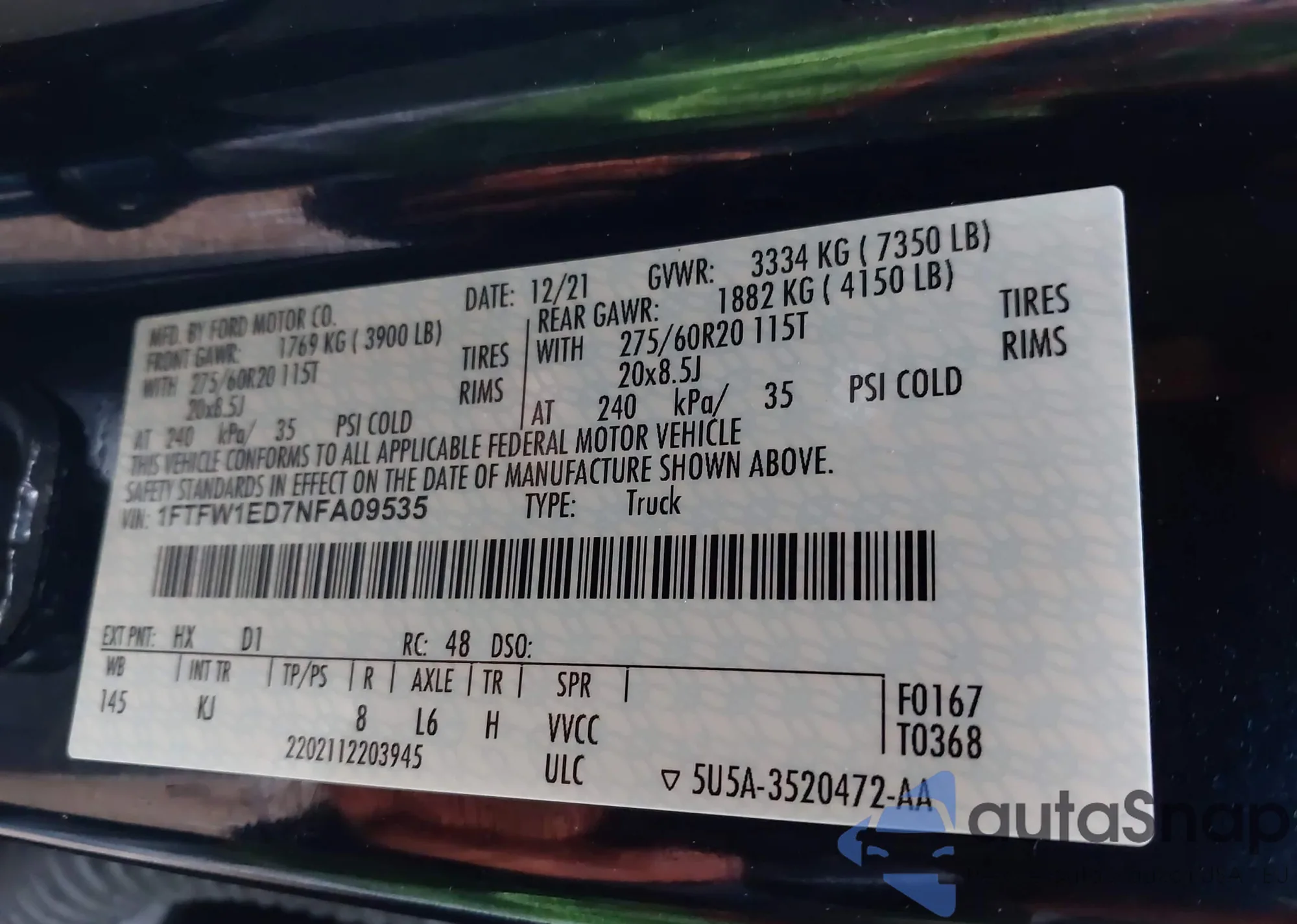 • VIN: 1FTFW1ED7NFA09535