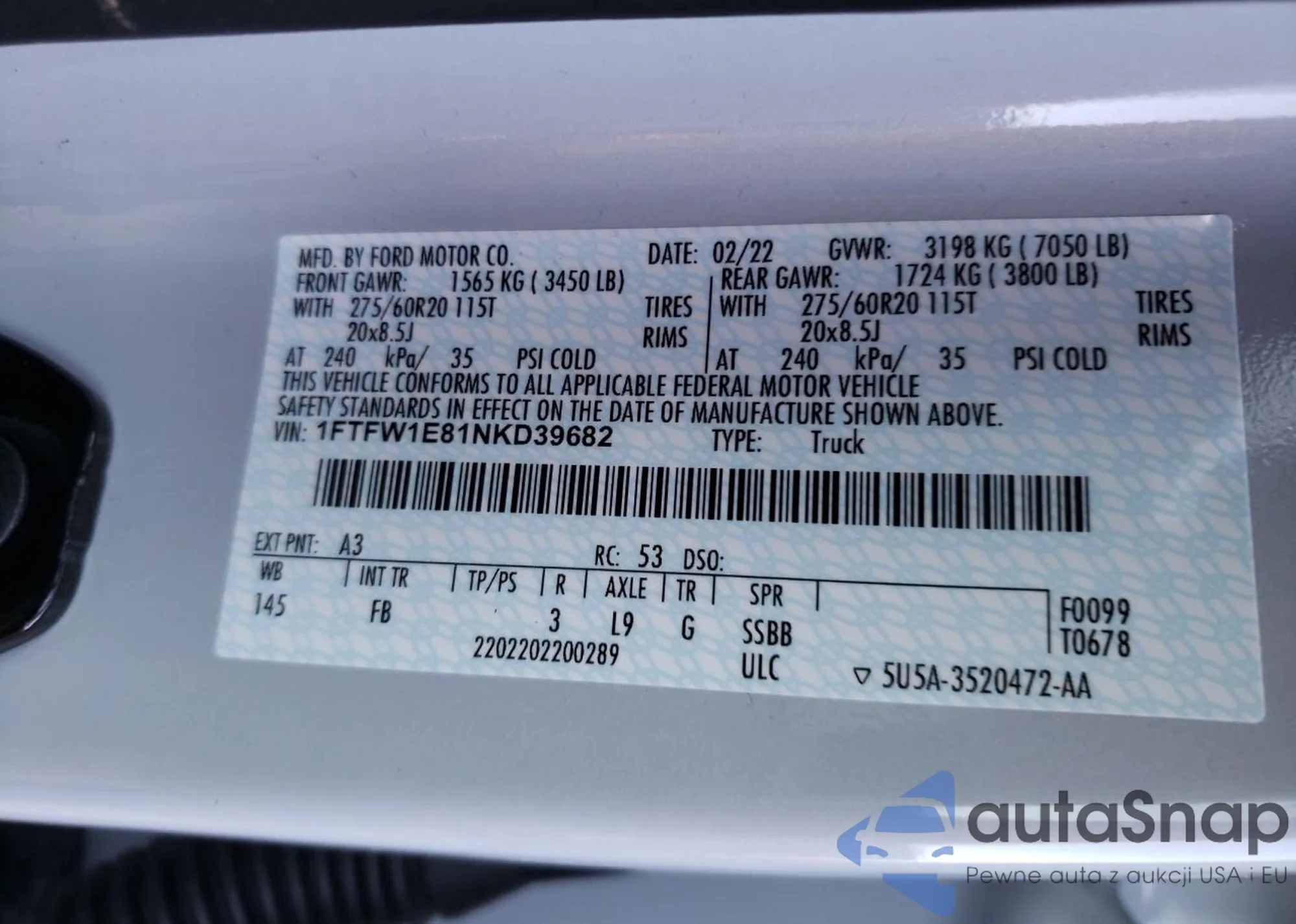 1FTFW1E81NKD39682 COPART